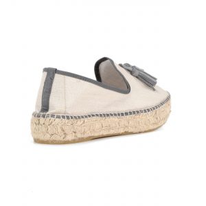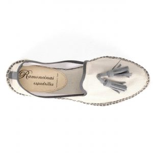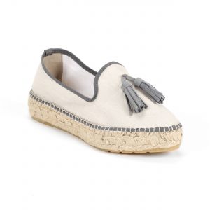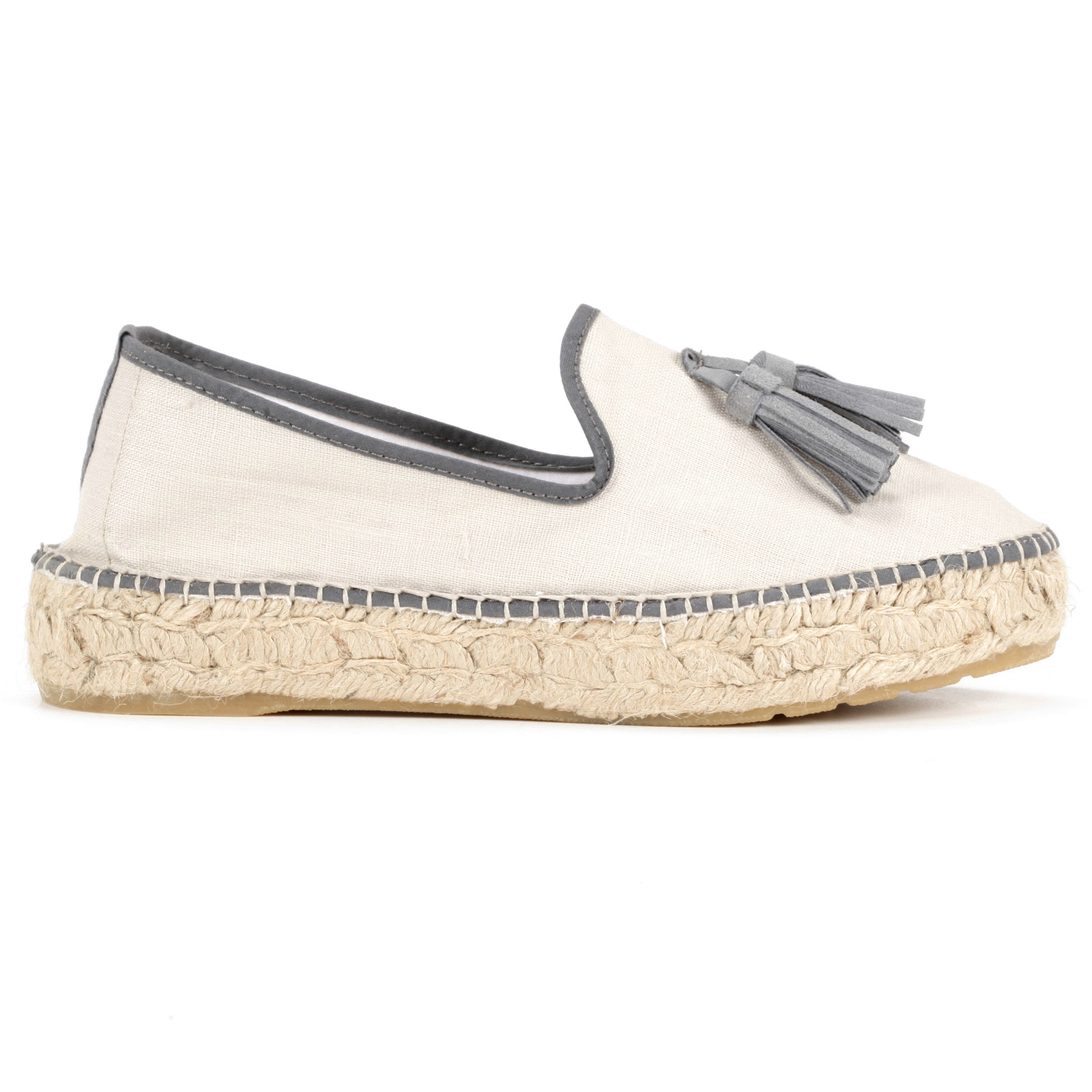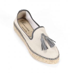 Slipper lino beig con borlas y ribete en gris y piso doble natural 3 cm