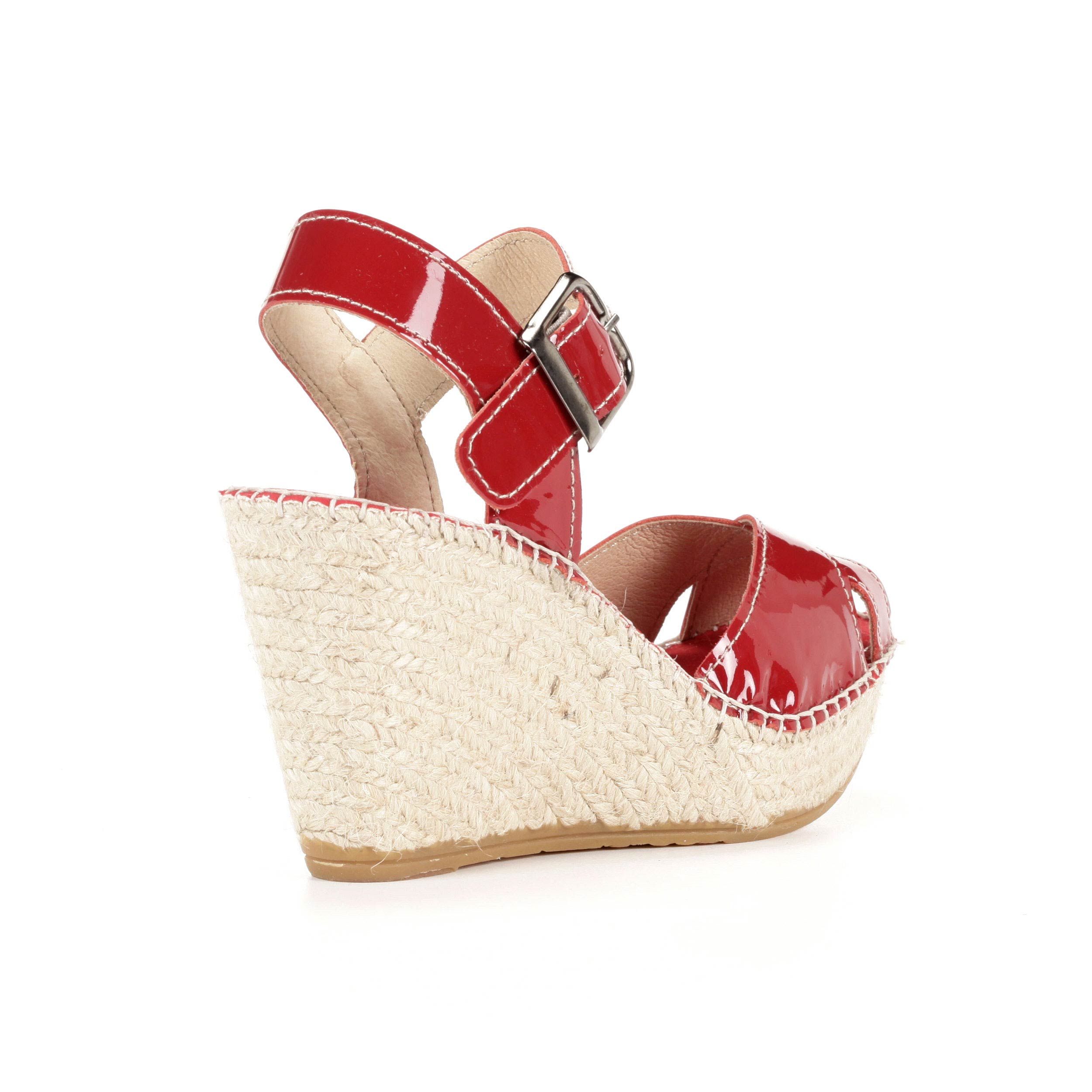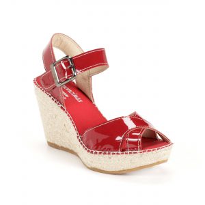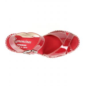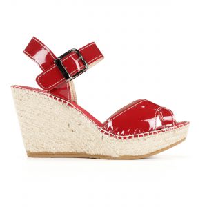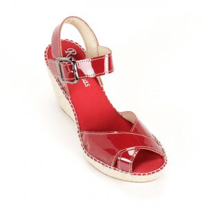 Sandalia de charol rojo con hebilla metalica grande en suela miss flor 9 cm