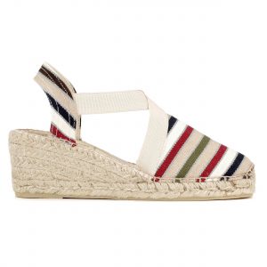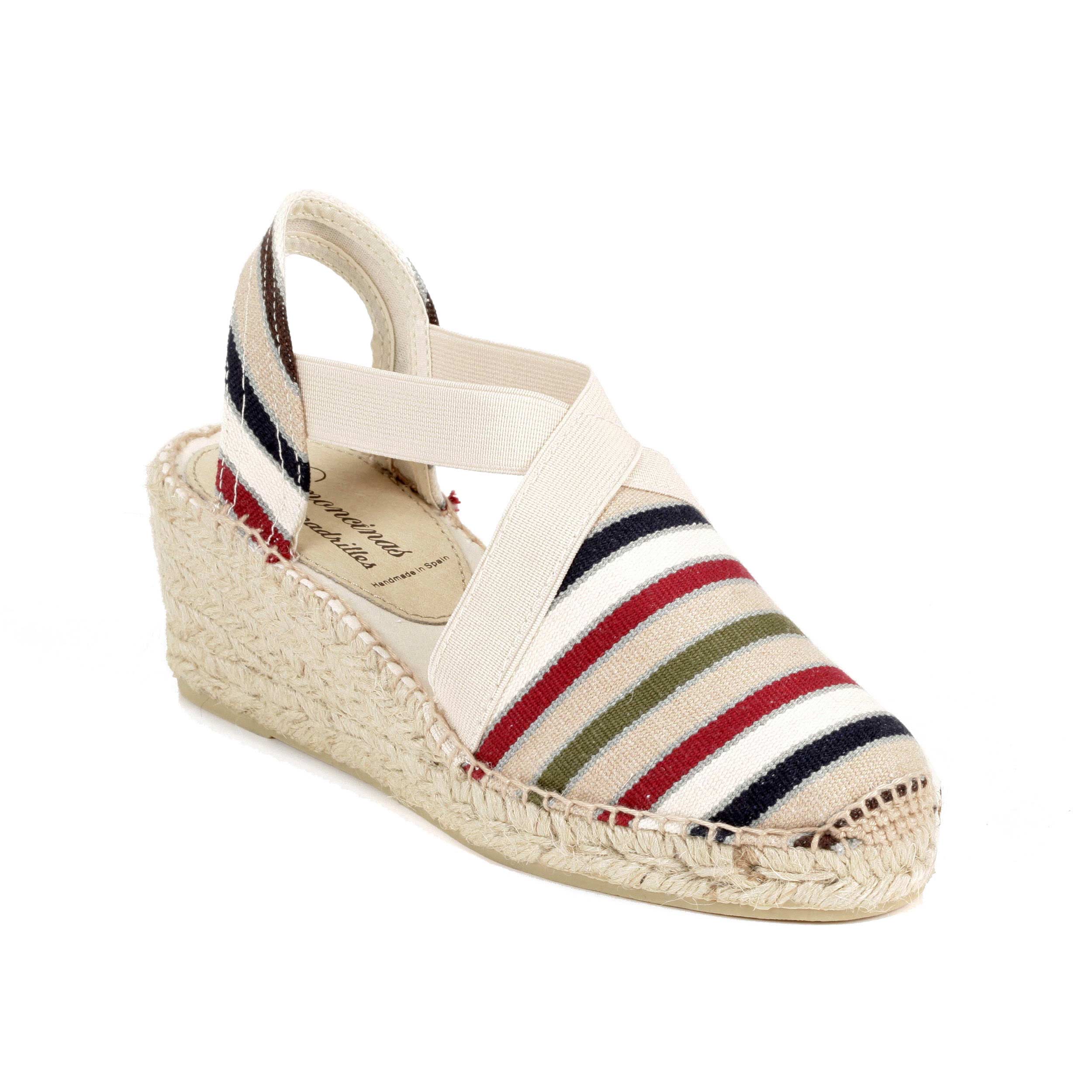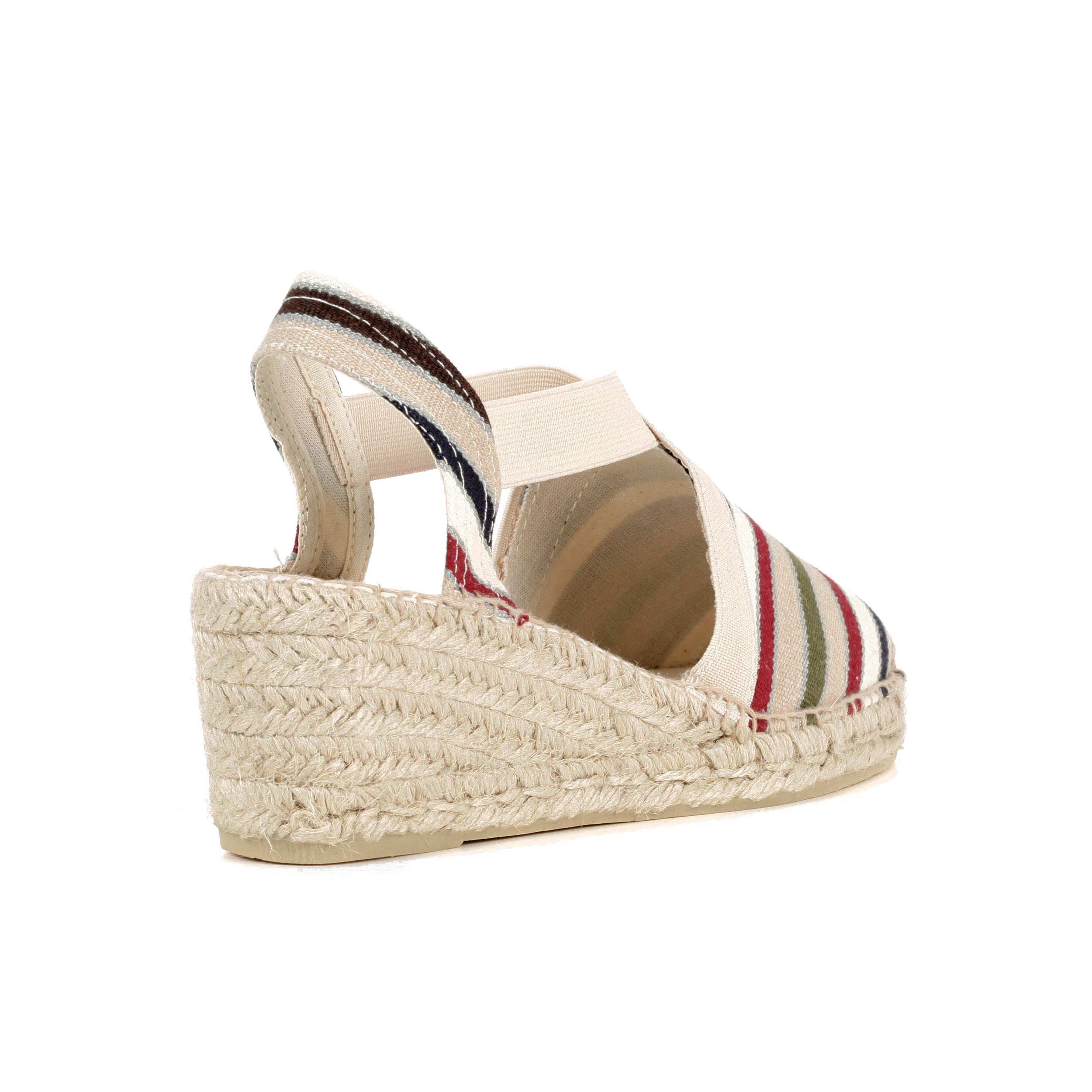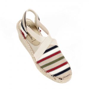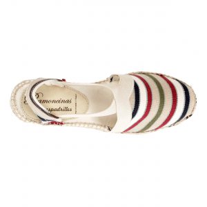 valenciana con elasticos cruzados en tejido de rayas multicrudo suela cuatro cuerdas 6 cm