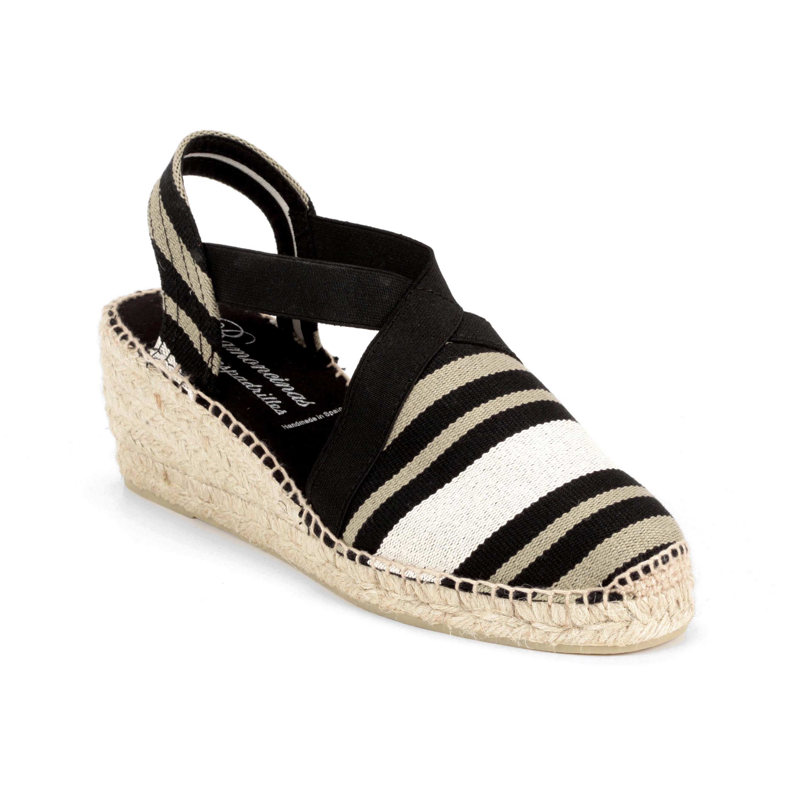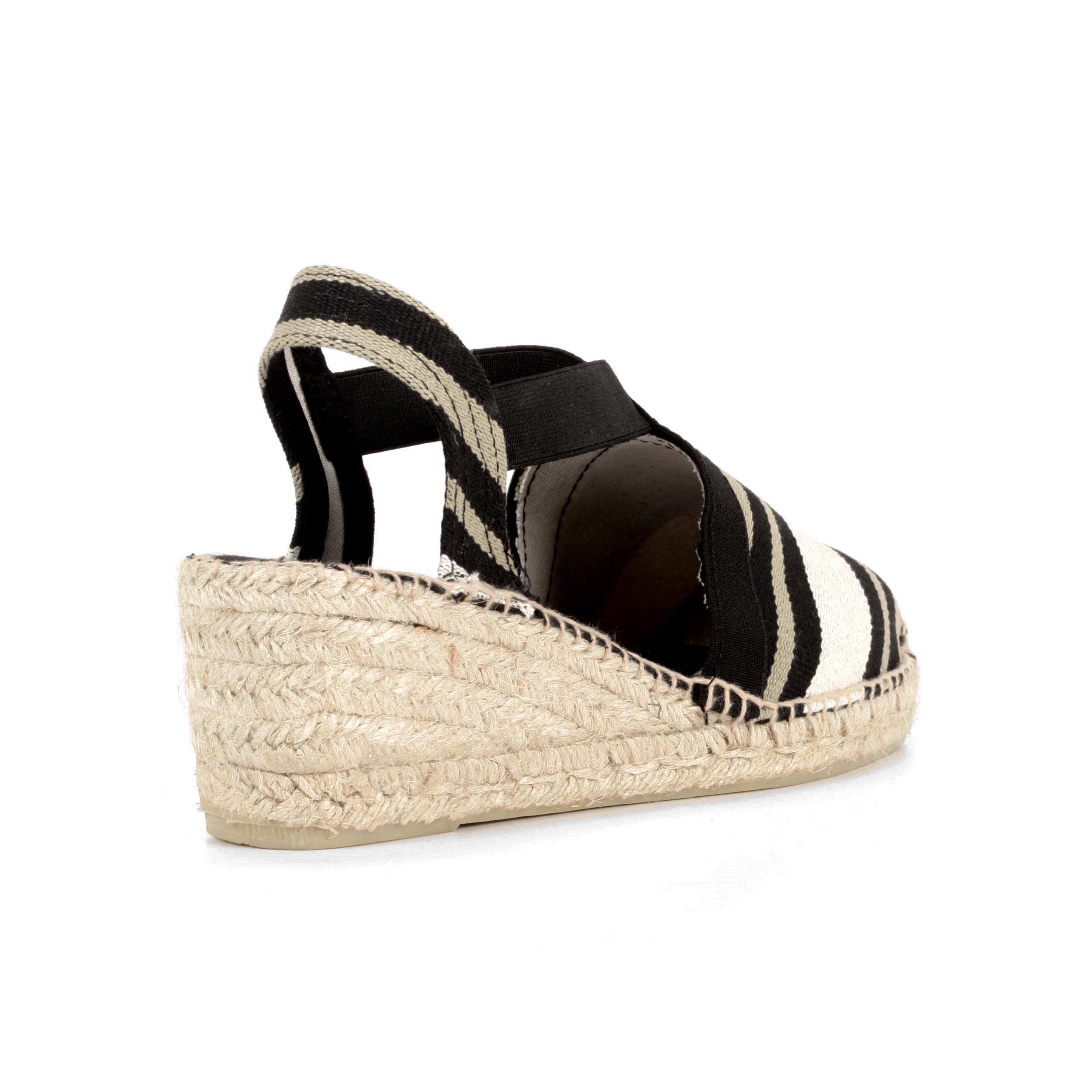 Valenciana con elasticos cruzados en tejido de rayas negras suela cuatro cuerdas 6 cm