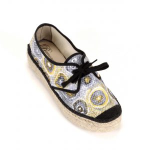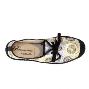 Inglés tejido pop negro con ribete negro y piso triple natural 3.5 cm