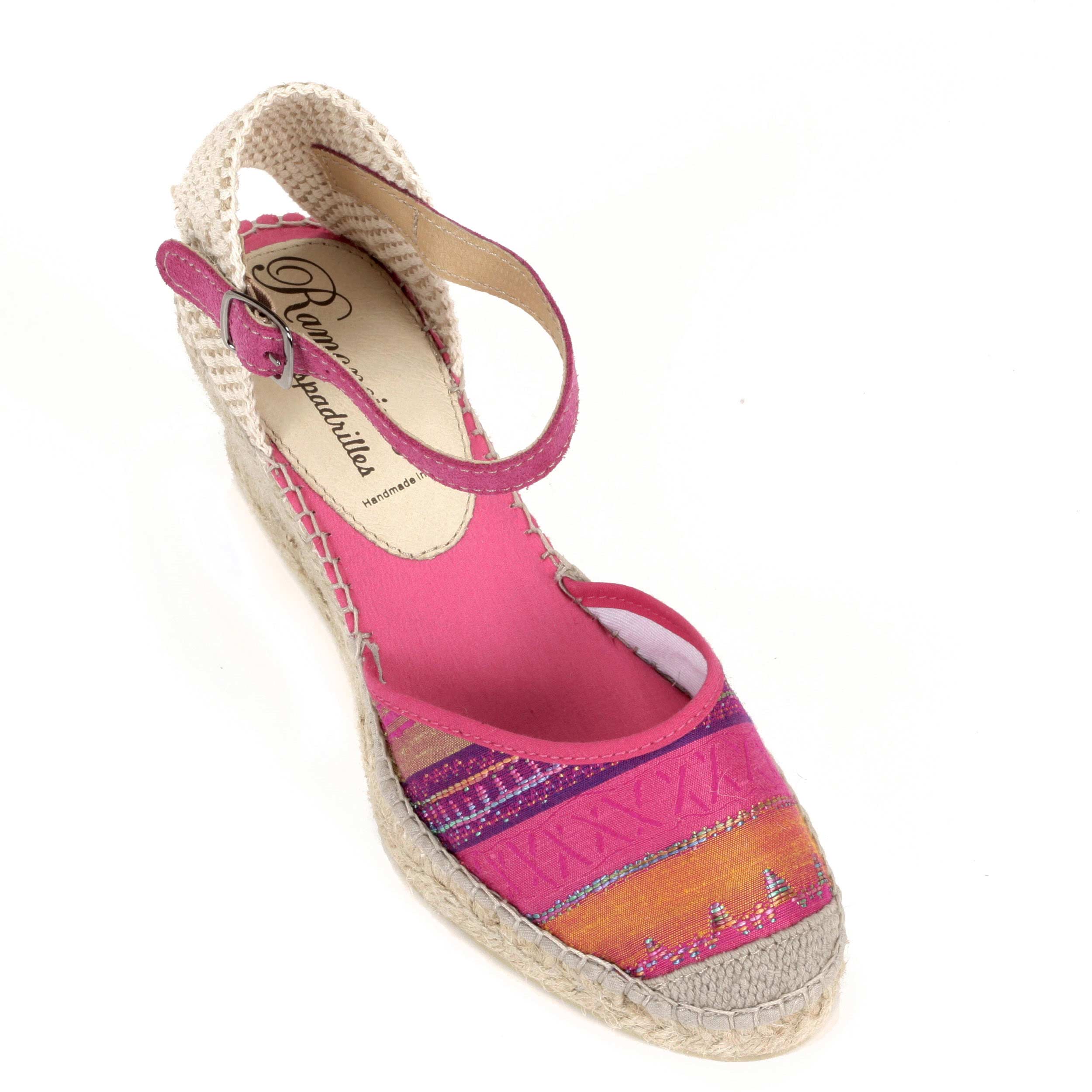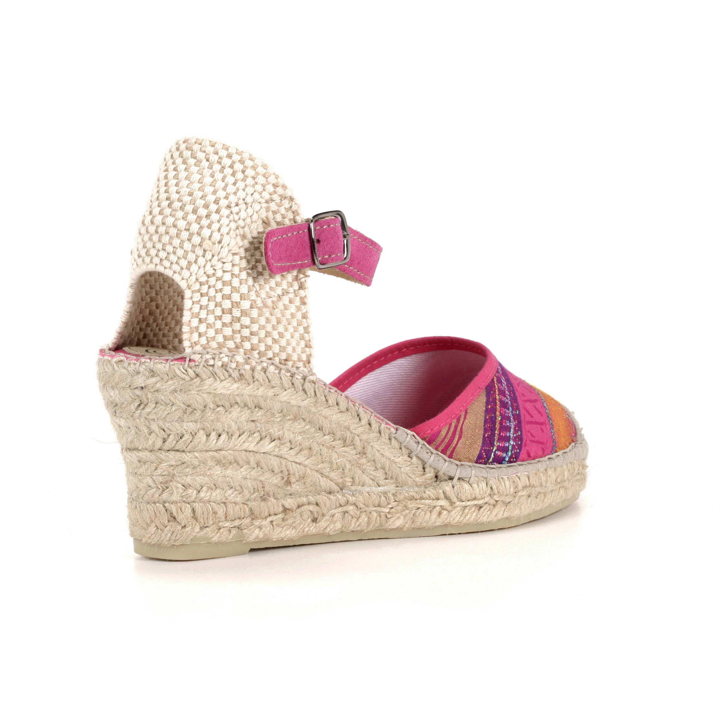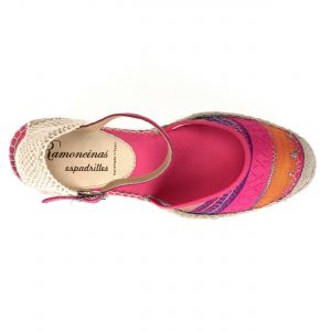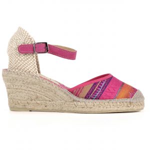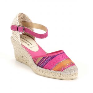 Salón pulsera con hebilla en tejido etnico fucsia en suela cinco cuerdas 7 cm