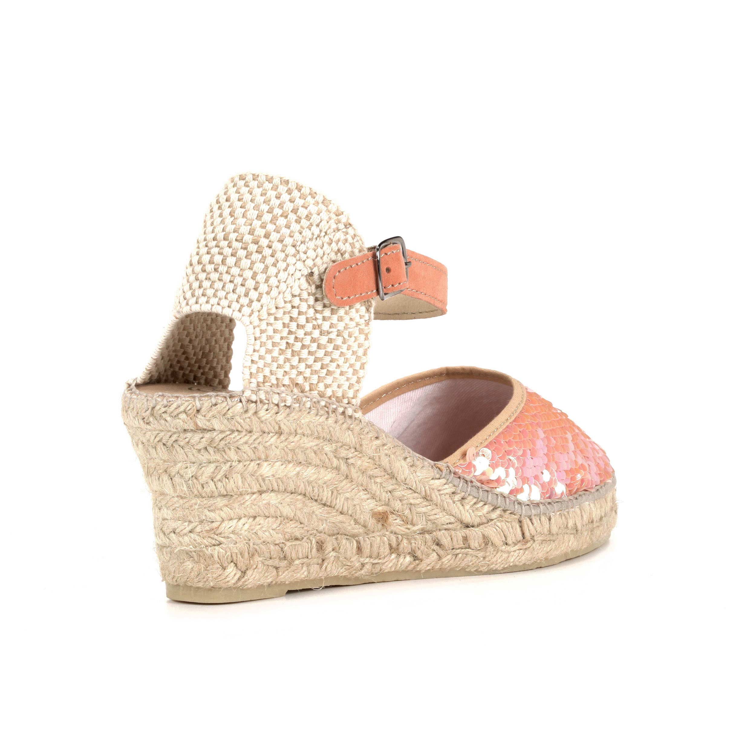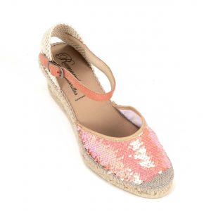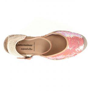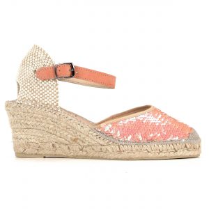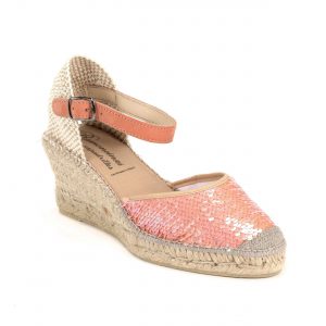 Salón pulsera con hebilla en lentejuelas melón en suela cinco cuerdas 7 cm