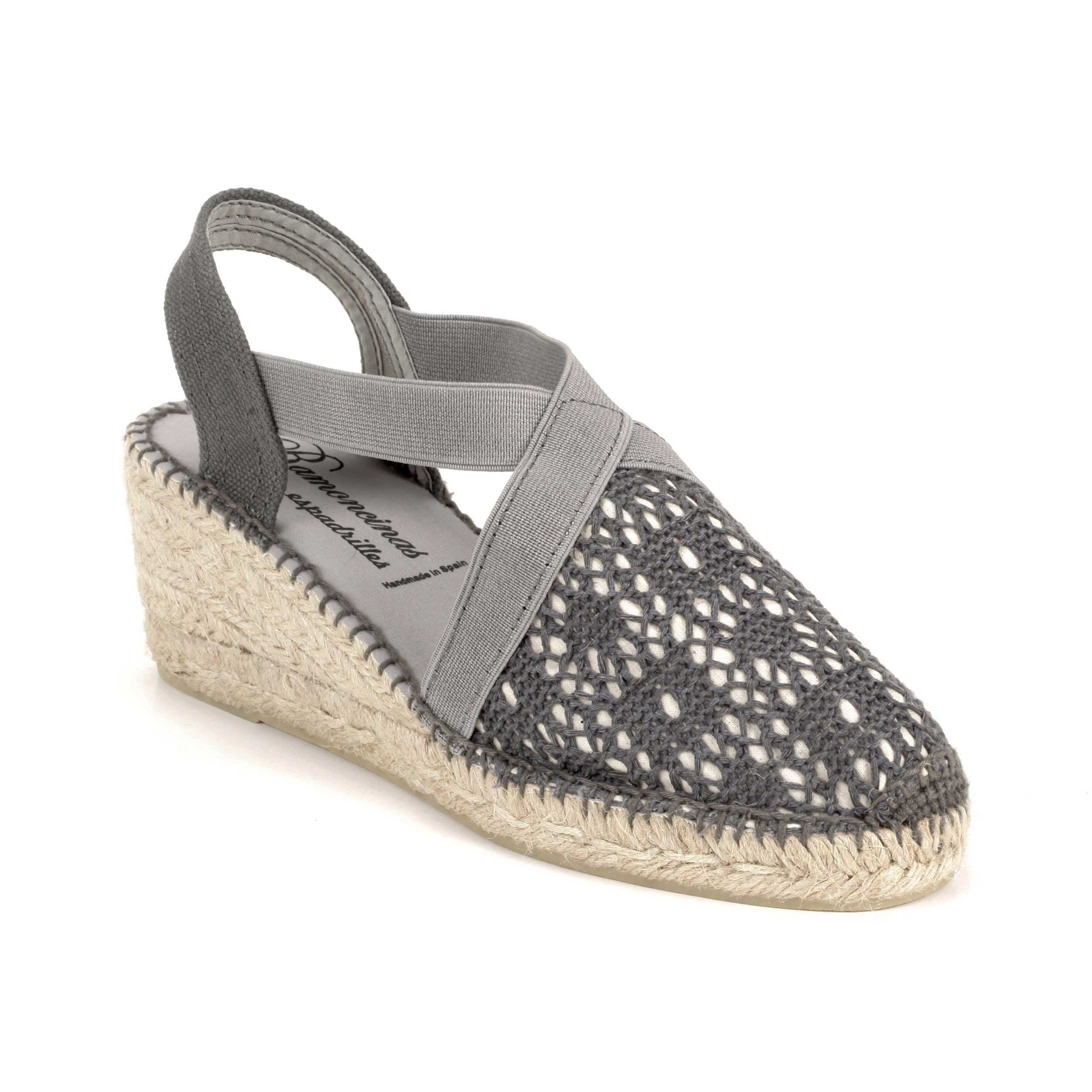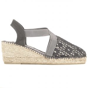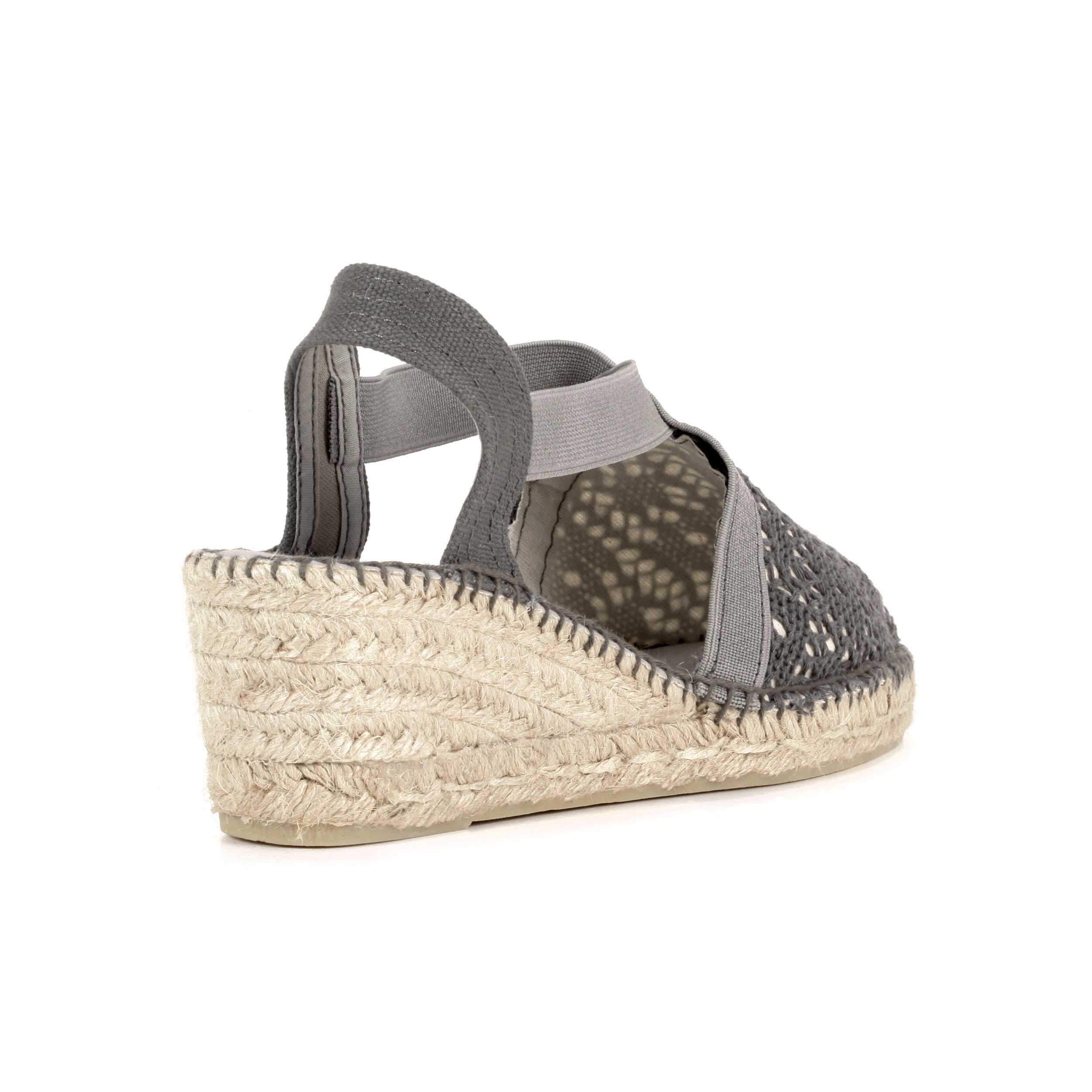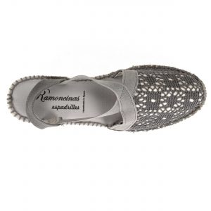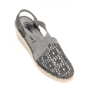 Valenciana con elasticos cruzados en tejido portobello gris en suela cuatro cuerdas 6 cm