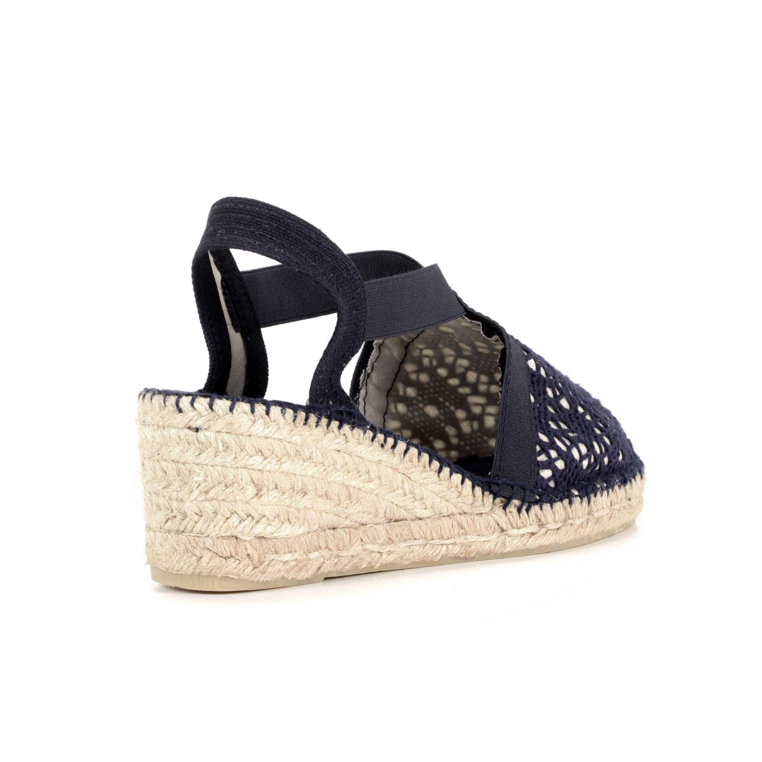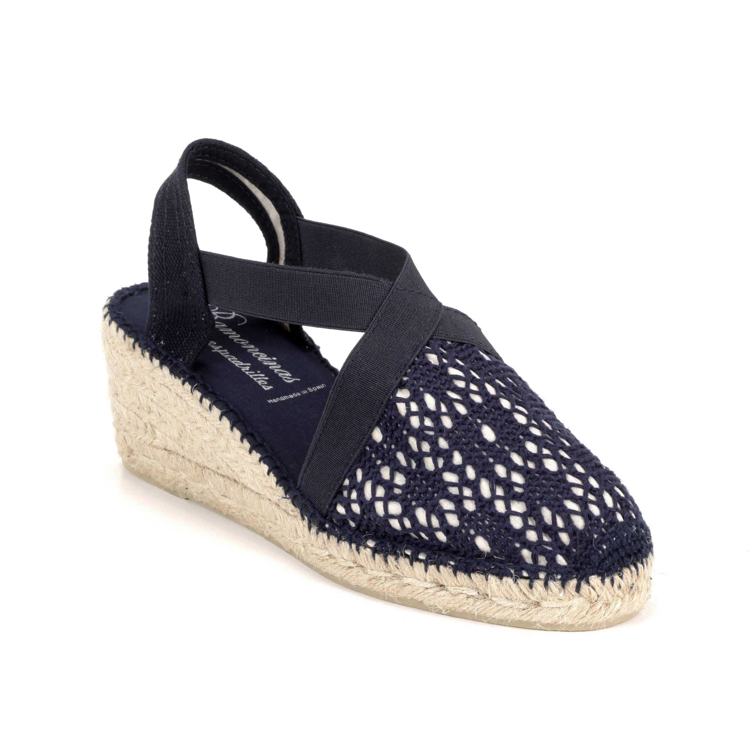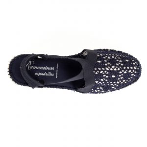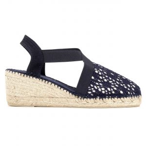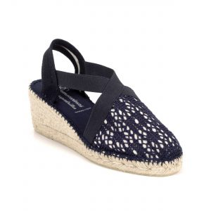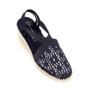 Valenciana con elasticos cruzados en tejido portobello marino en suela cuatro cuerdas 6 cm