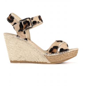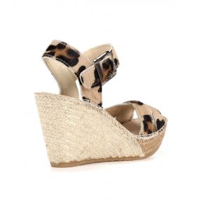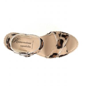 Sandalia cruzada con hebilla grande piel leopardo en suela miss flor bicolor 9 cm