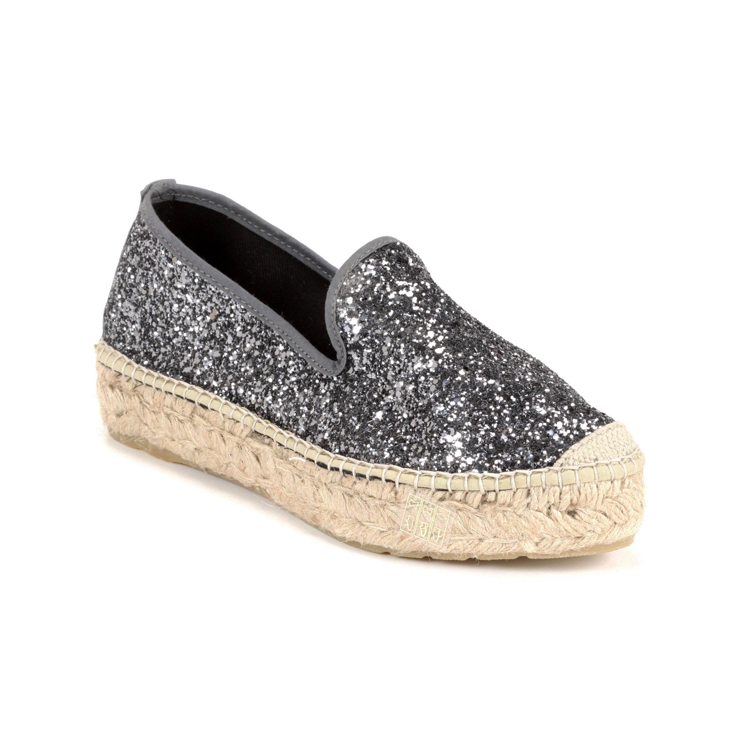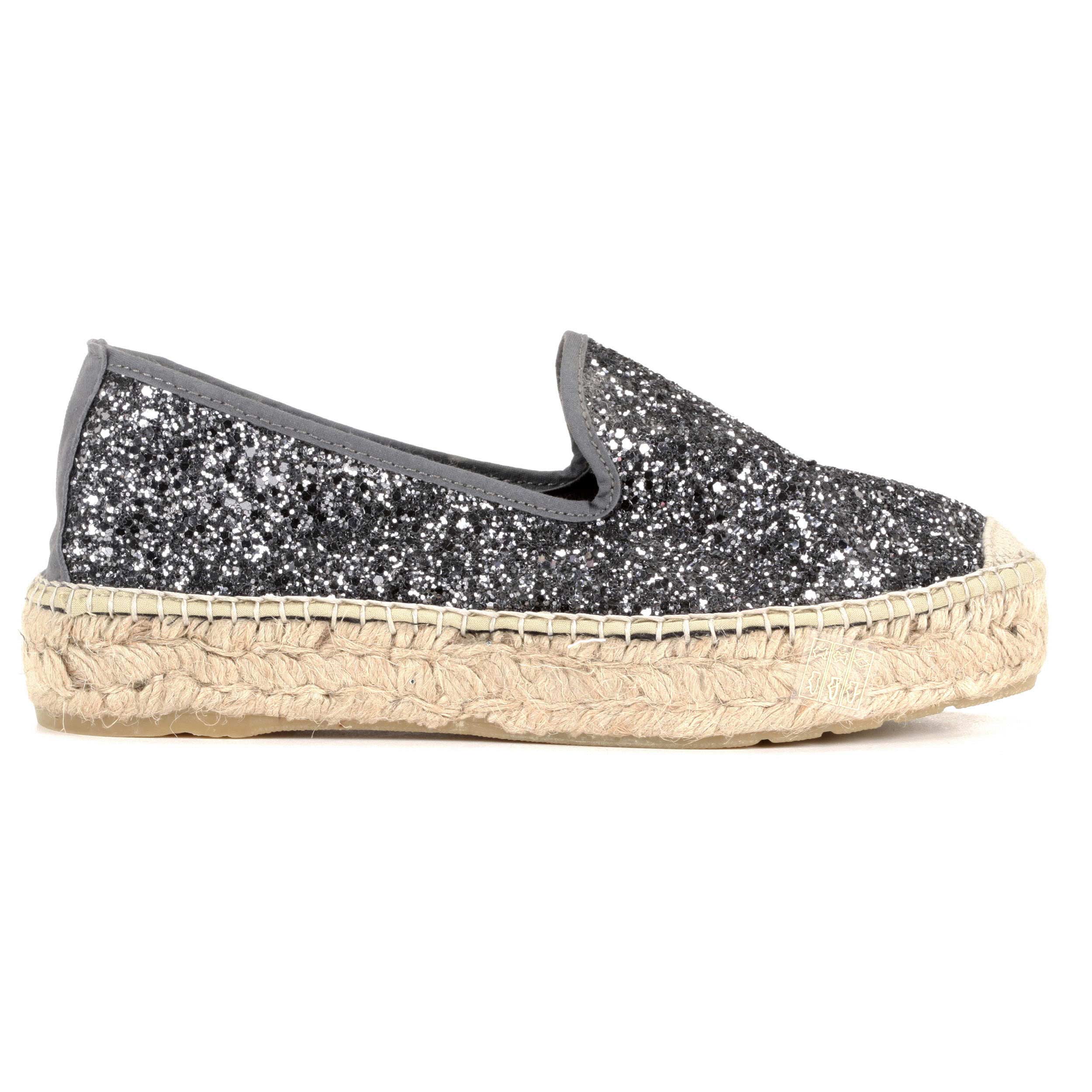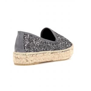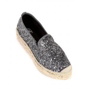 Slipper de glitter perla con trasera en piel al tono y puntera en suela plana