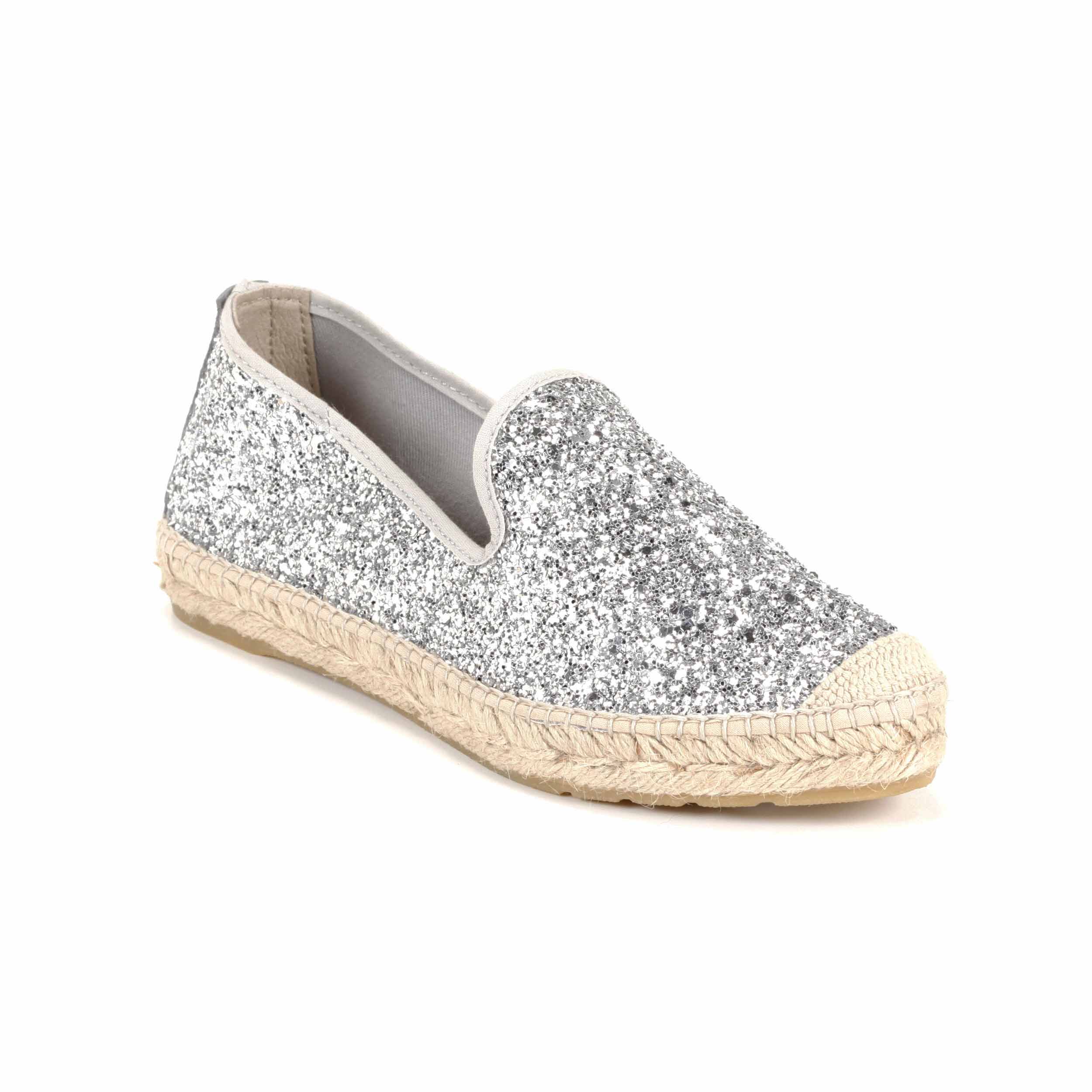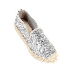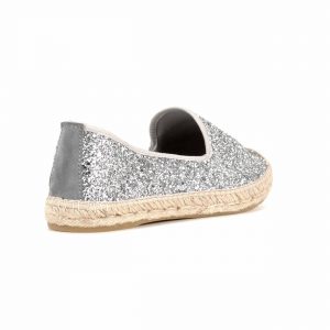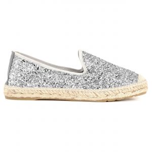 Slipper de glitter plata con trasera en piel al tono y puntera en suela plana