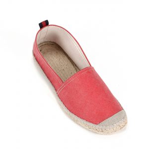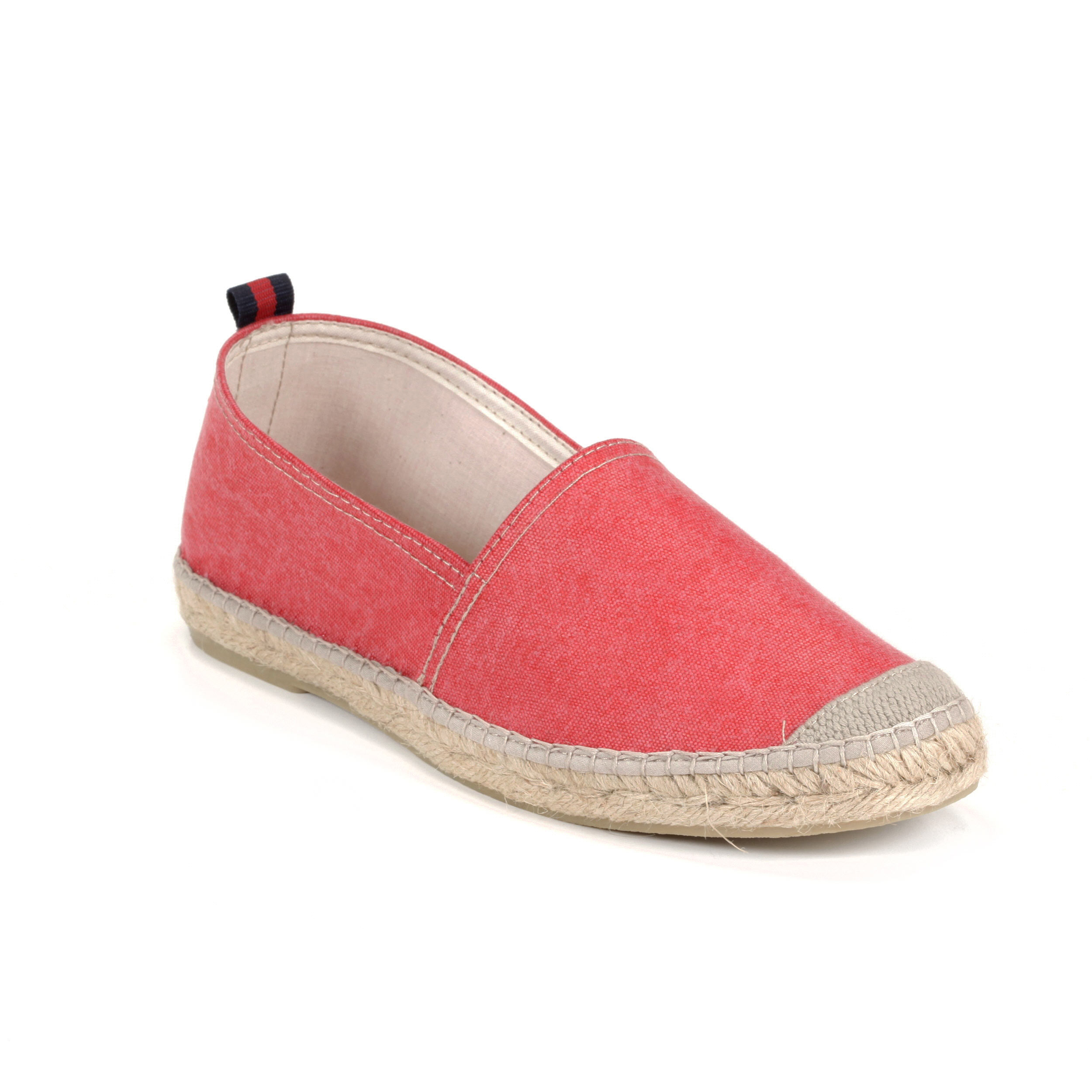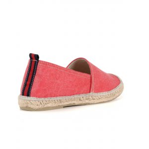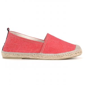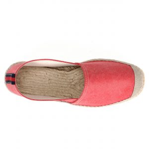 Camping en lona encerada rojo con trasera de rayas y puntera