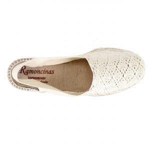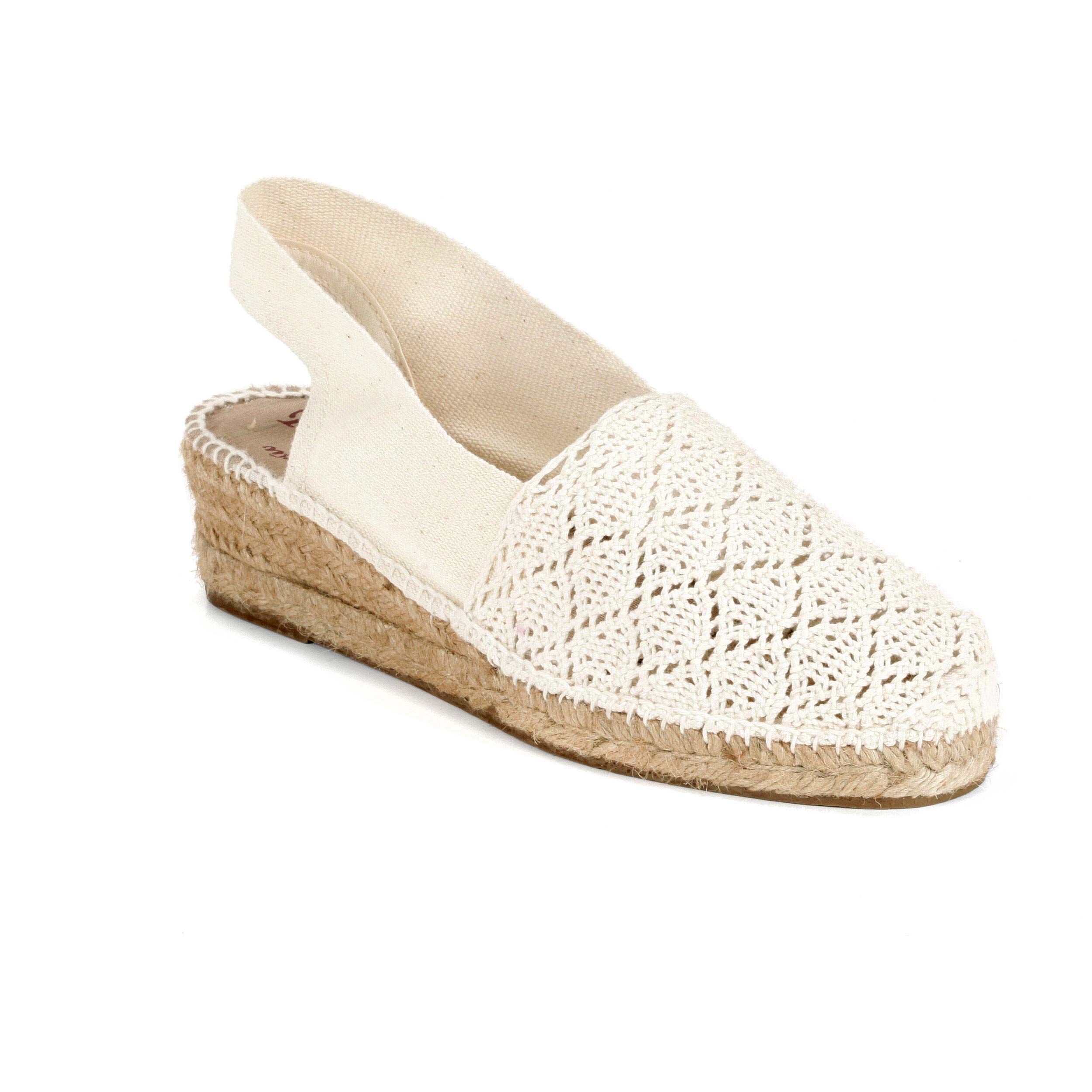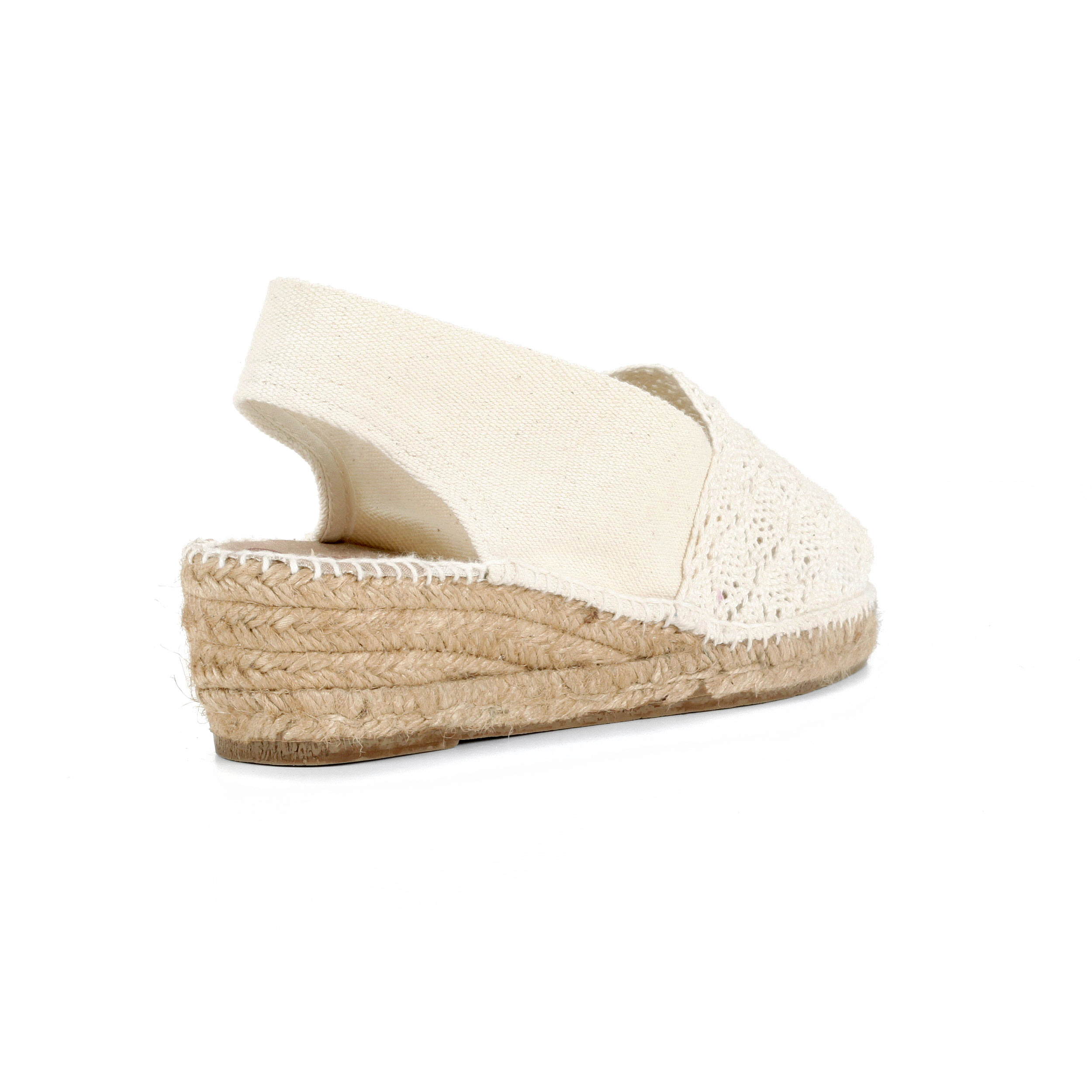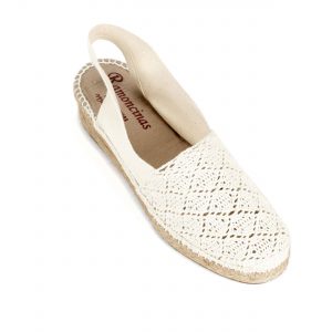 Cuña abierta destalonada en lona ganchillo crudo cuña 3 cm