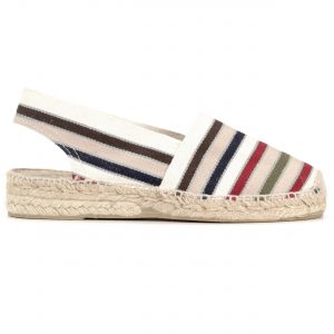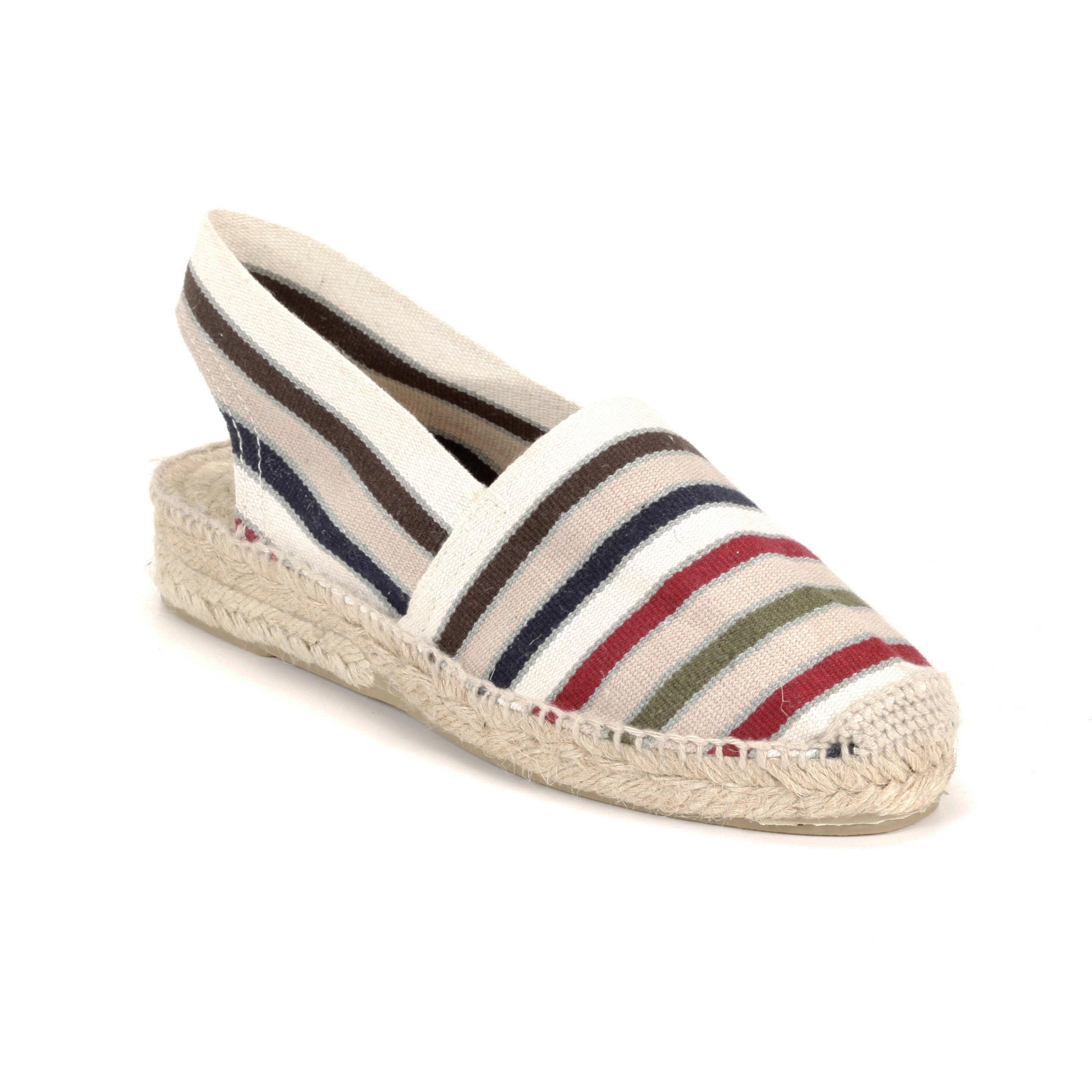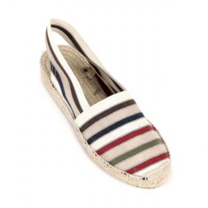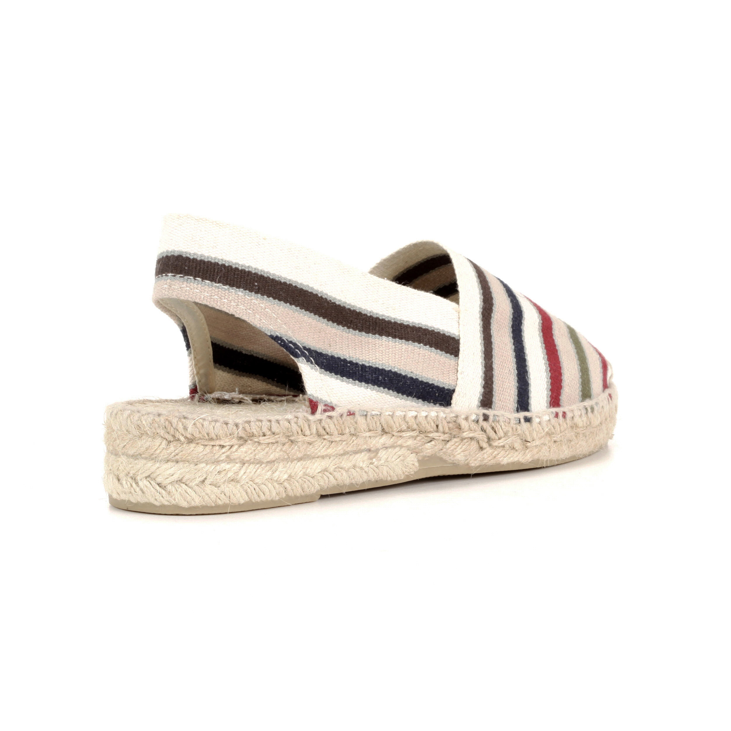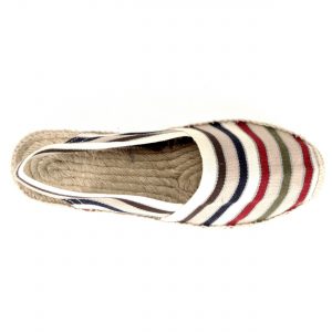 Camping con abertura trasera, lona de rayas multicrudo en suela media cuña natural 3 cm