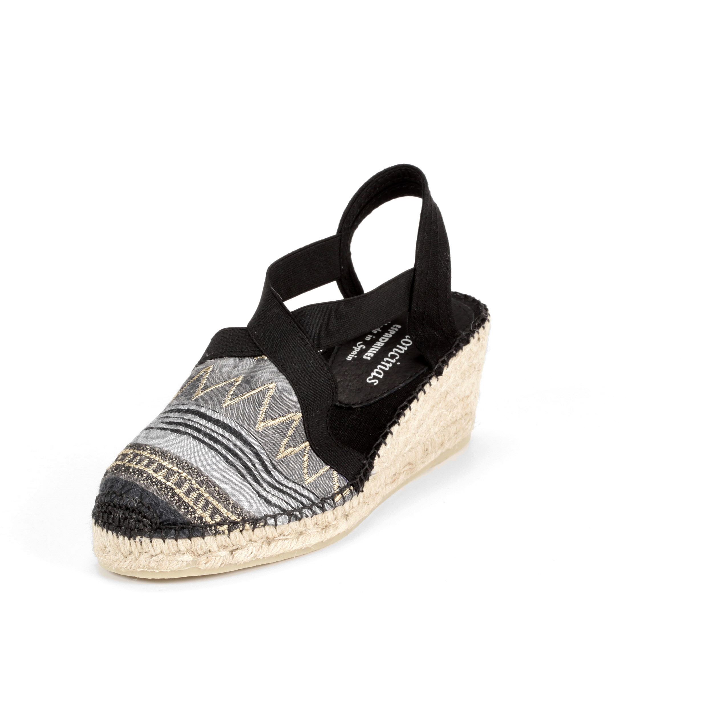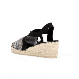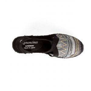Valenciana con elásticos cruzados y tejido étnico janna negro en suela cuatro cuerdas 6 cm