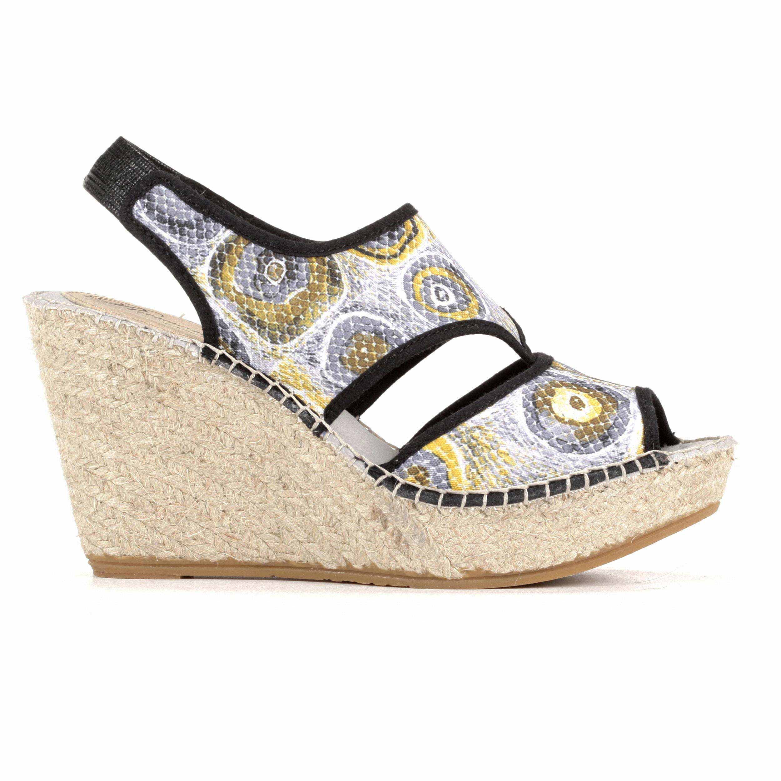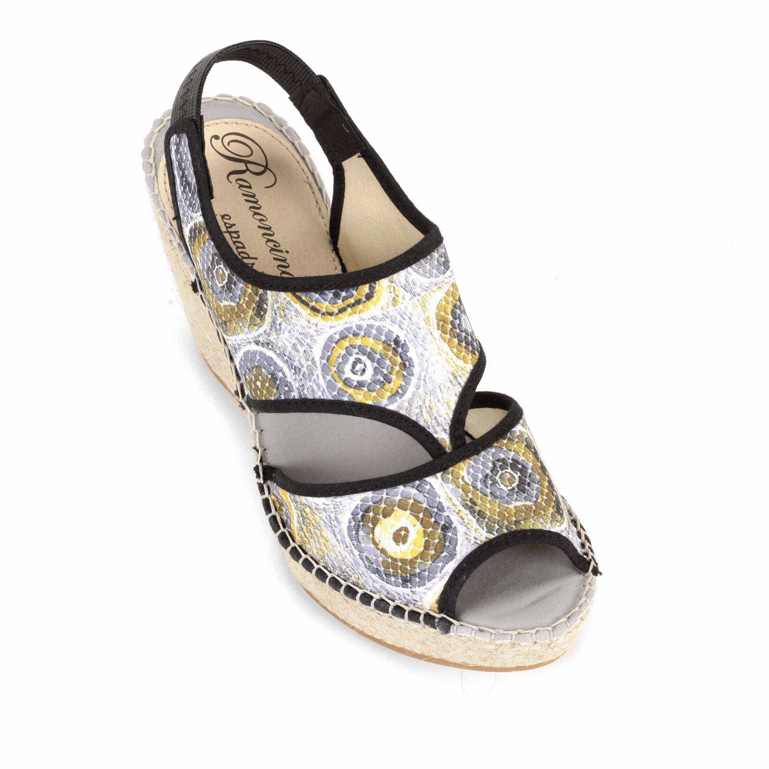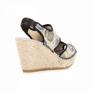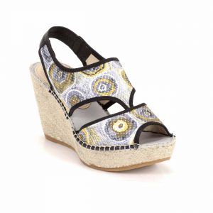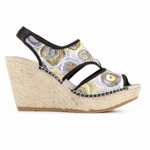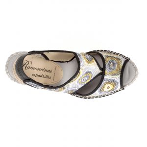 Zueco en tejido estampado pop negro con ribete negro en suela miss flor natural 9 cm