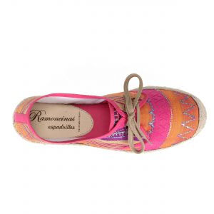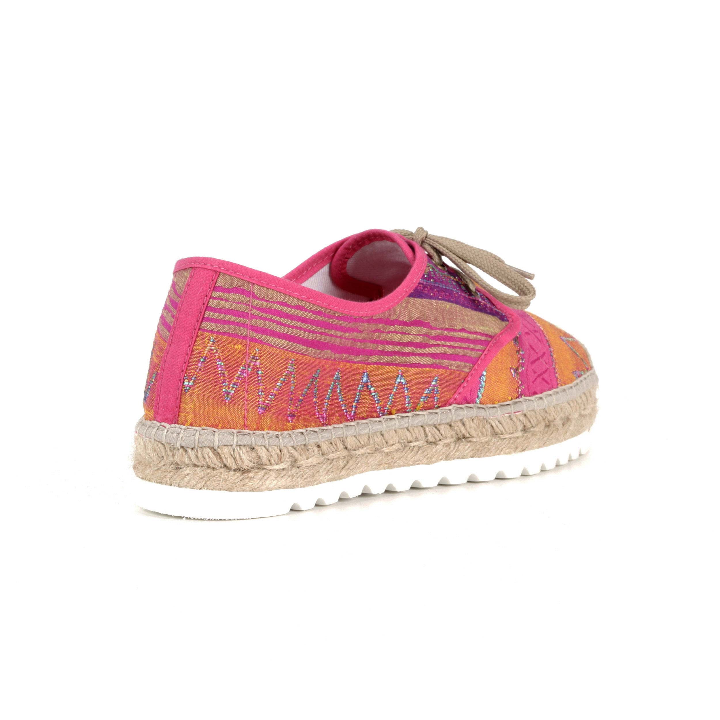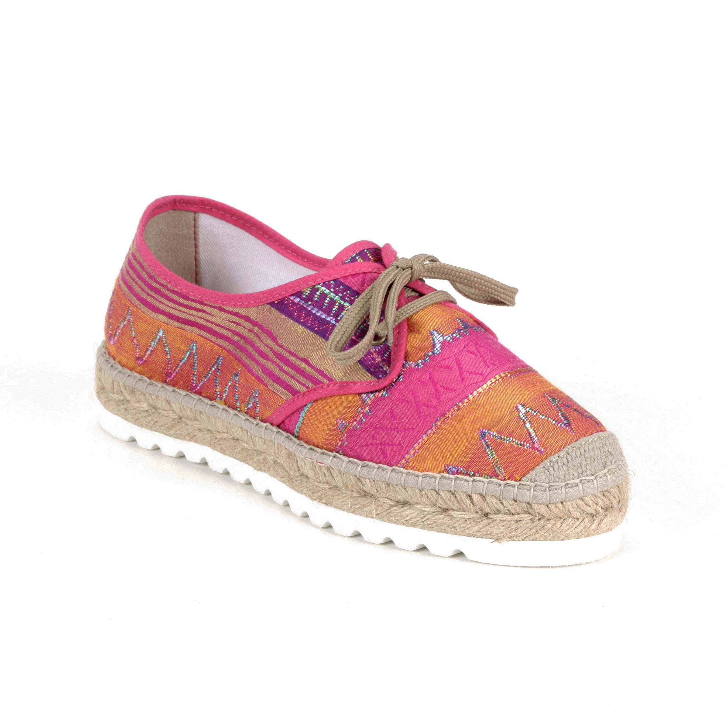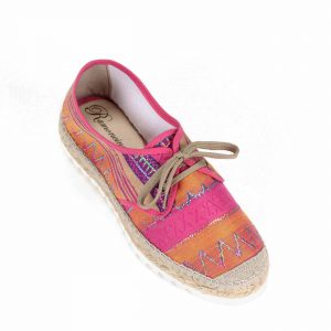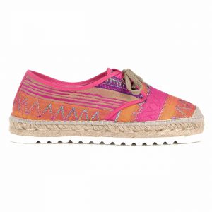 Inglés en tejido étnico janna fucsia ribeteado y puntera en suela de EVA blanco 3cm
