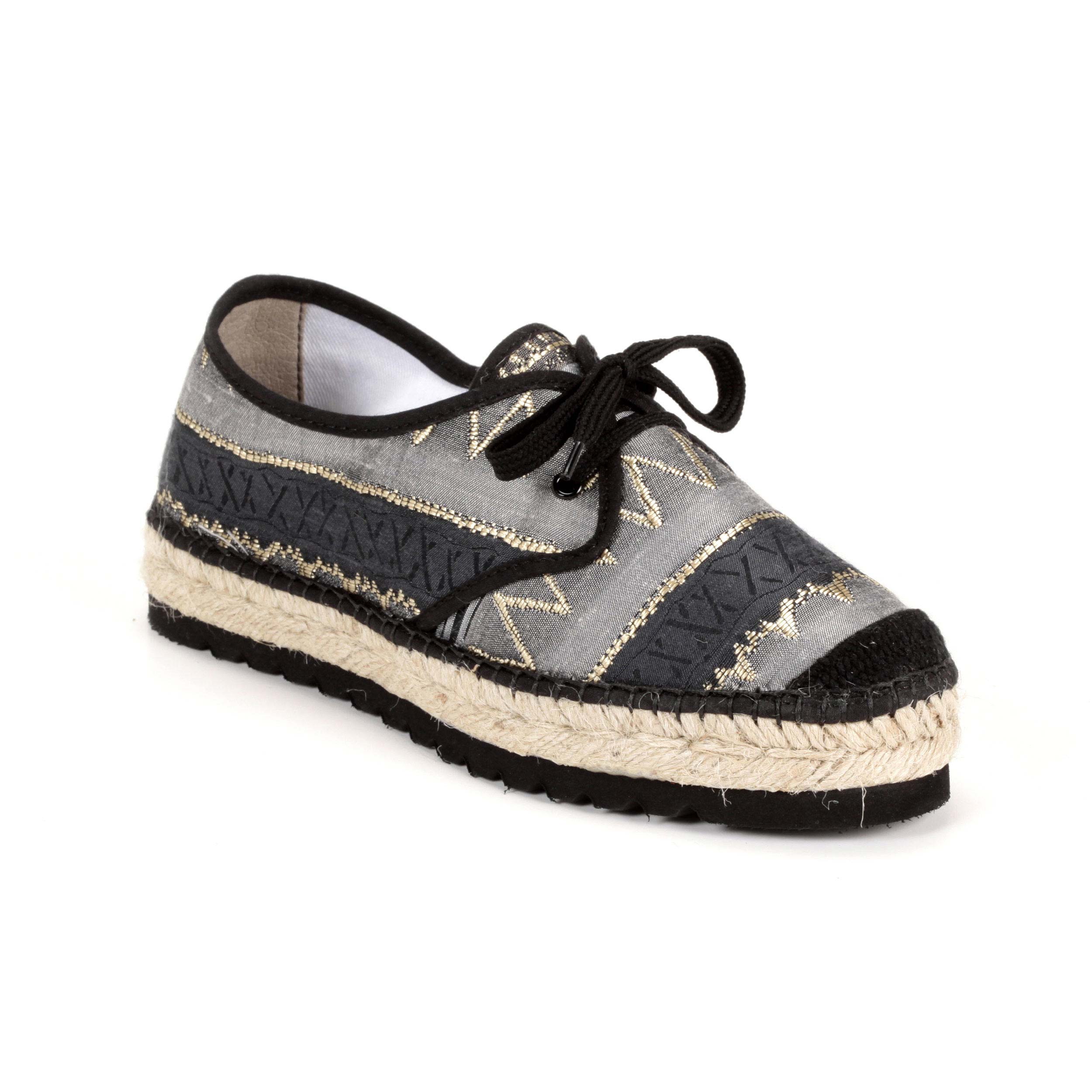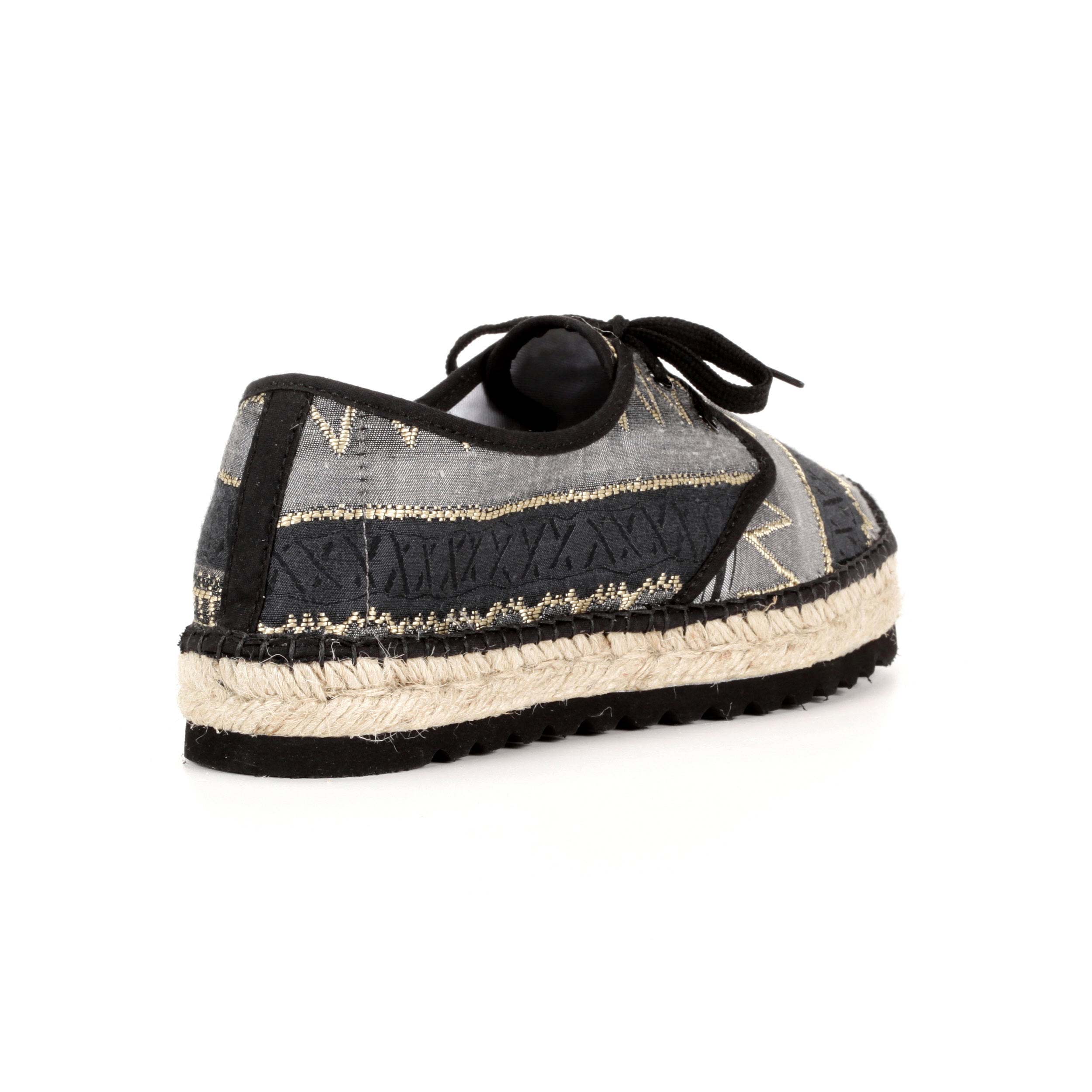 Inglés en tejido étnico janna negro ribeteado en suela de EVA negro 3cm