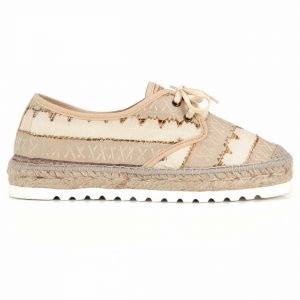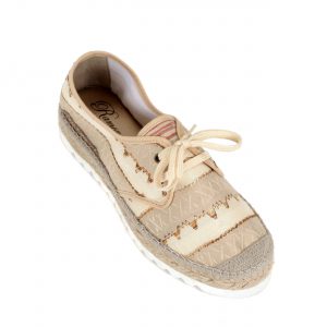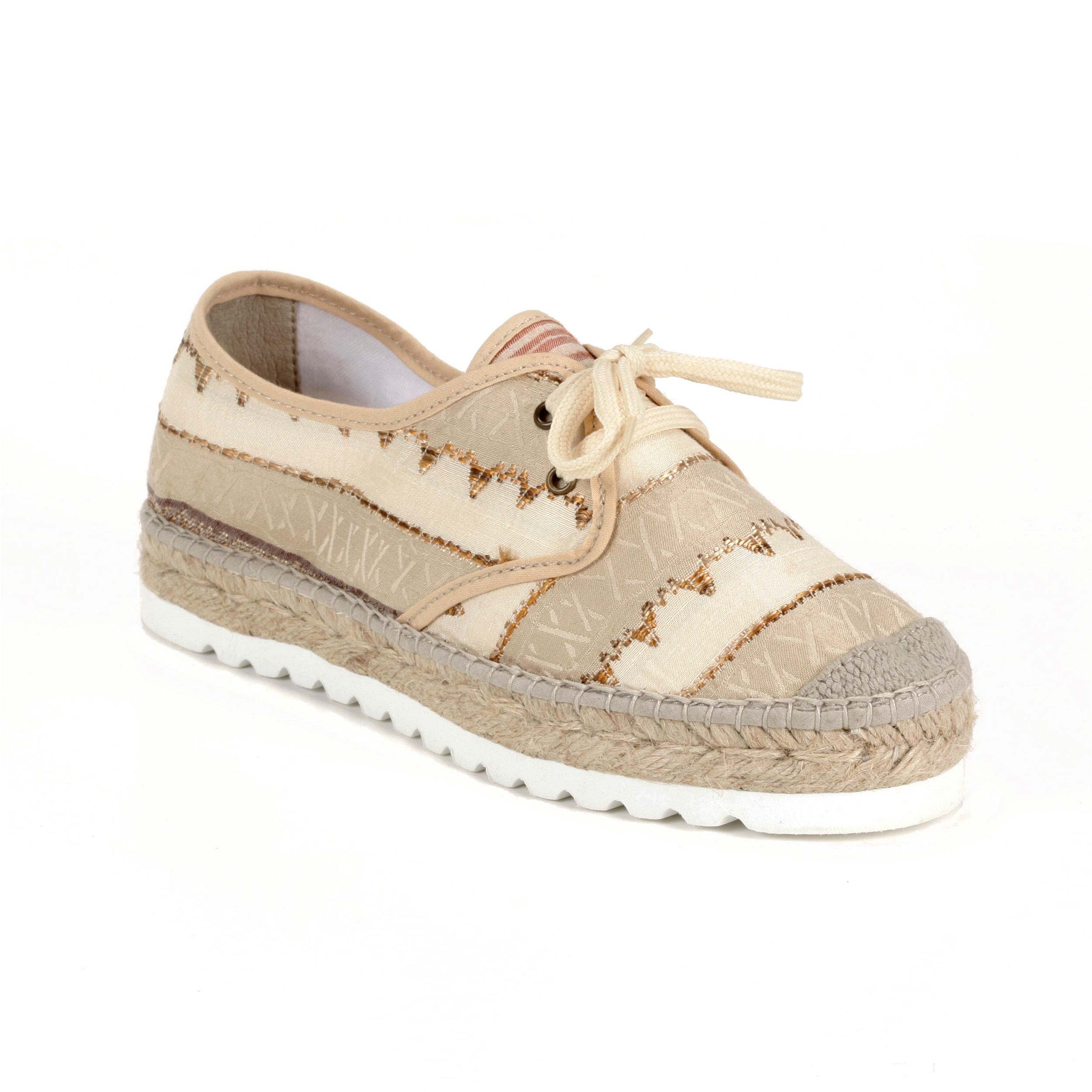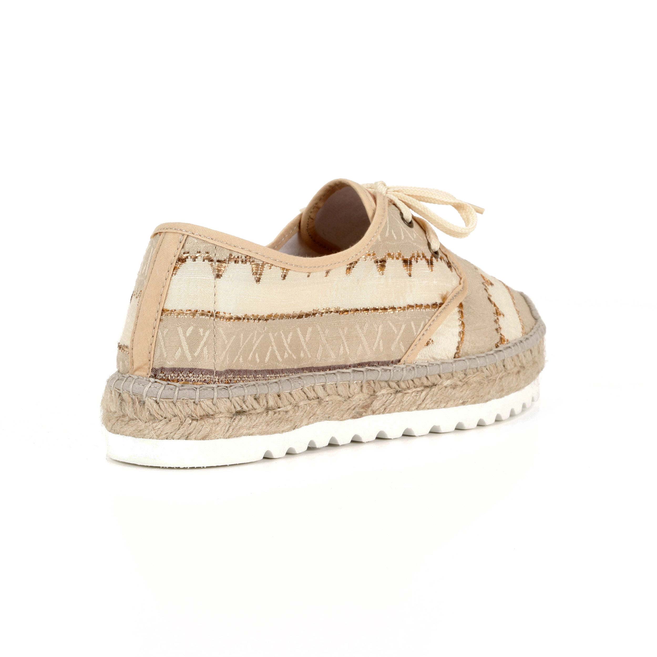 Inglés en tejido étnico ribeteado en tostado en suela de EVA blanco 3 cm
