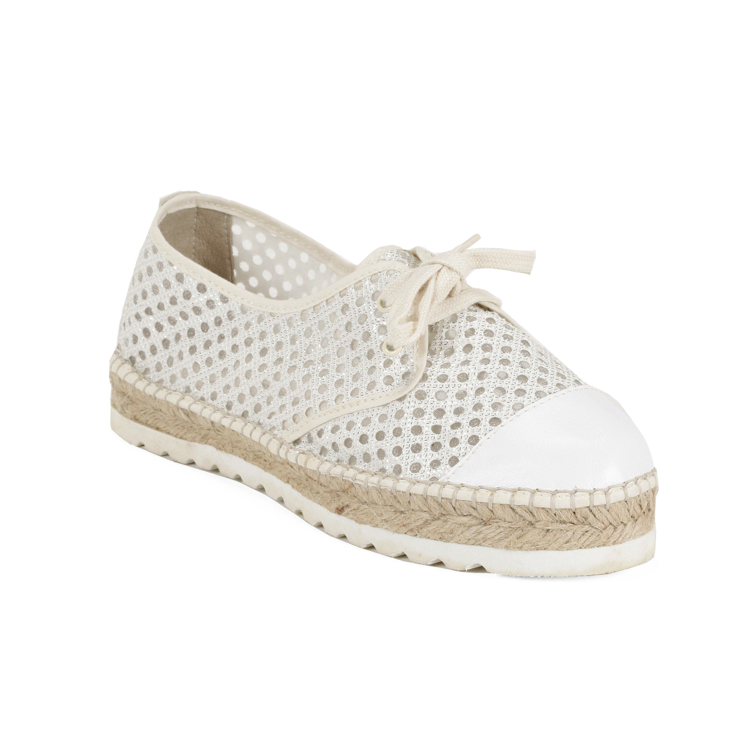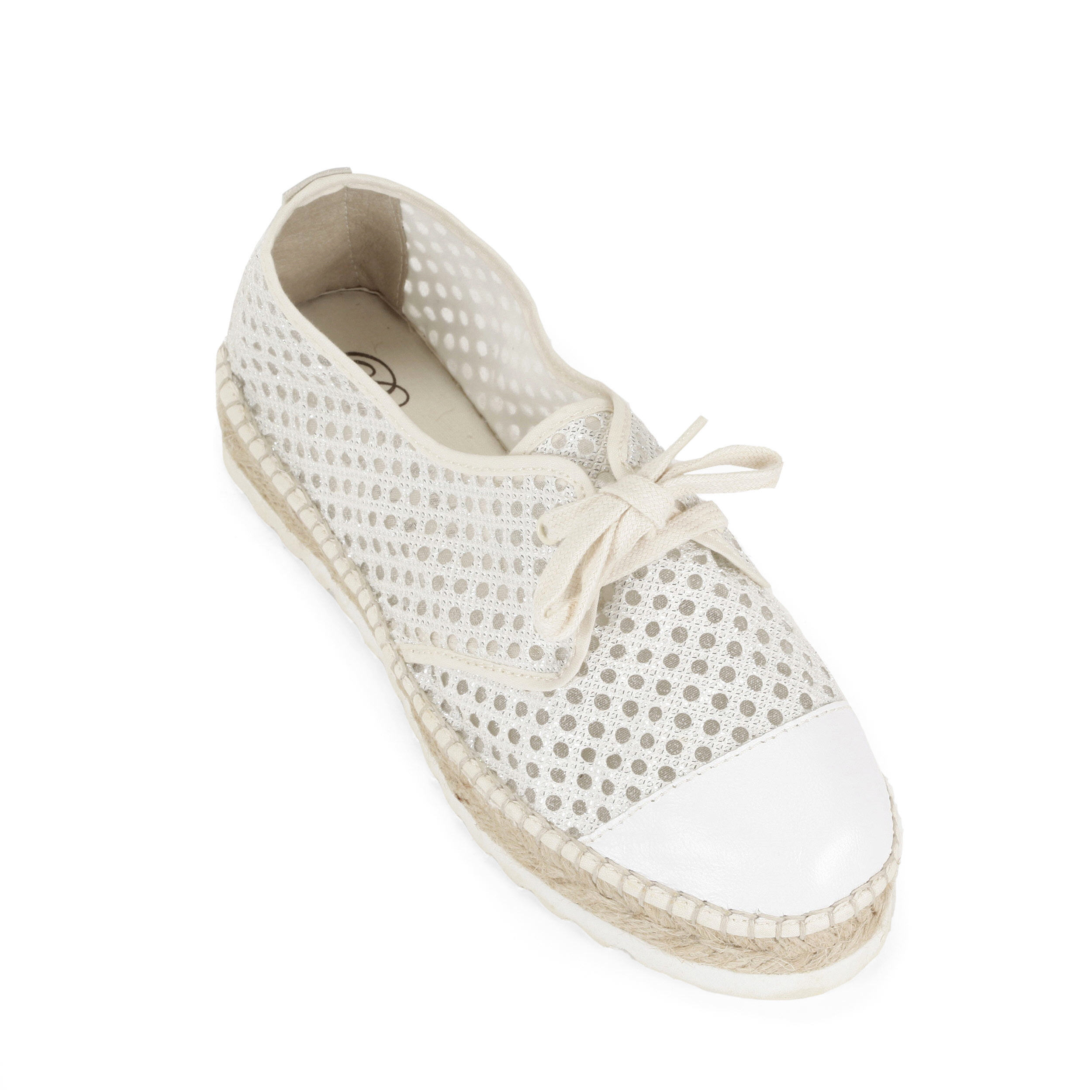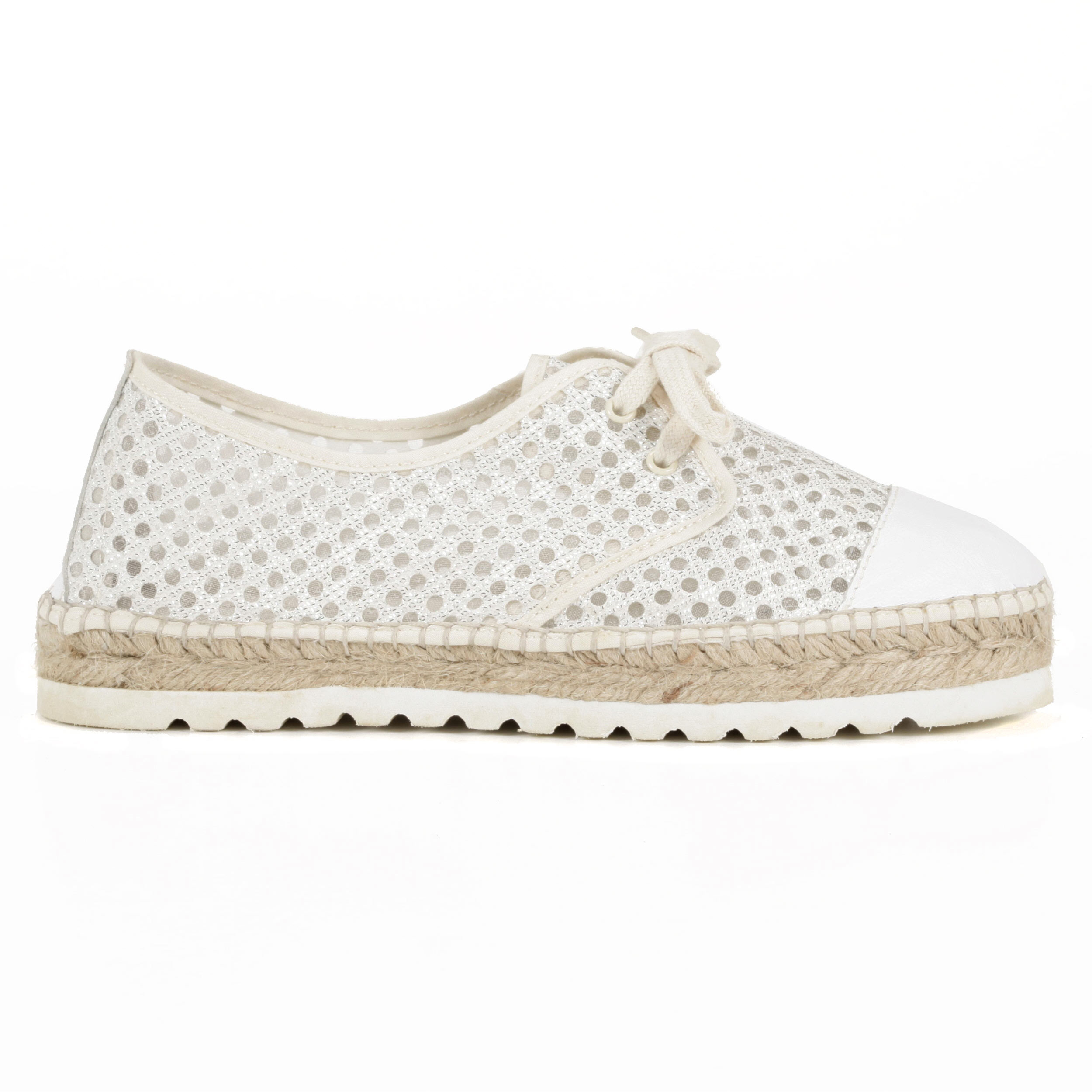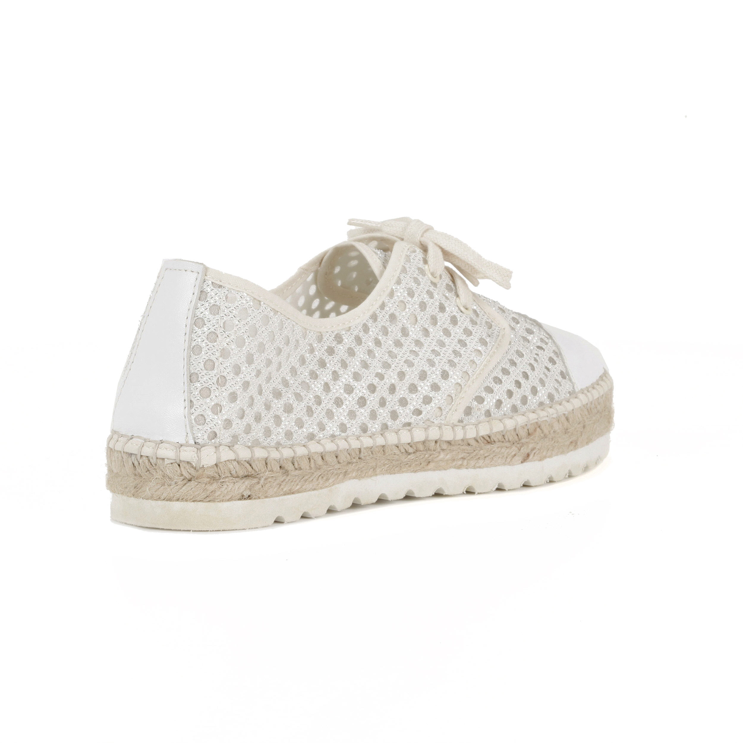 Inglés en tejido de rejilla sienna beig y puntera de piel blanca en suela de EVA blanco 3 cm