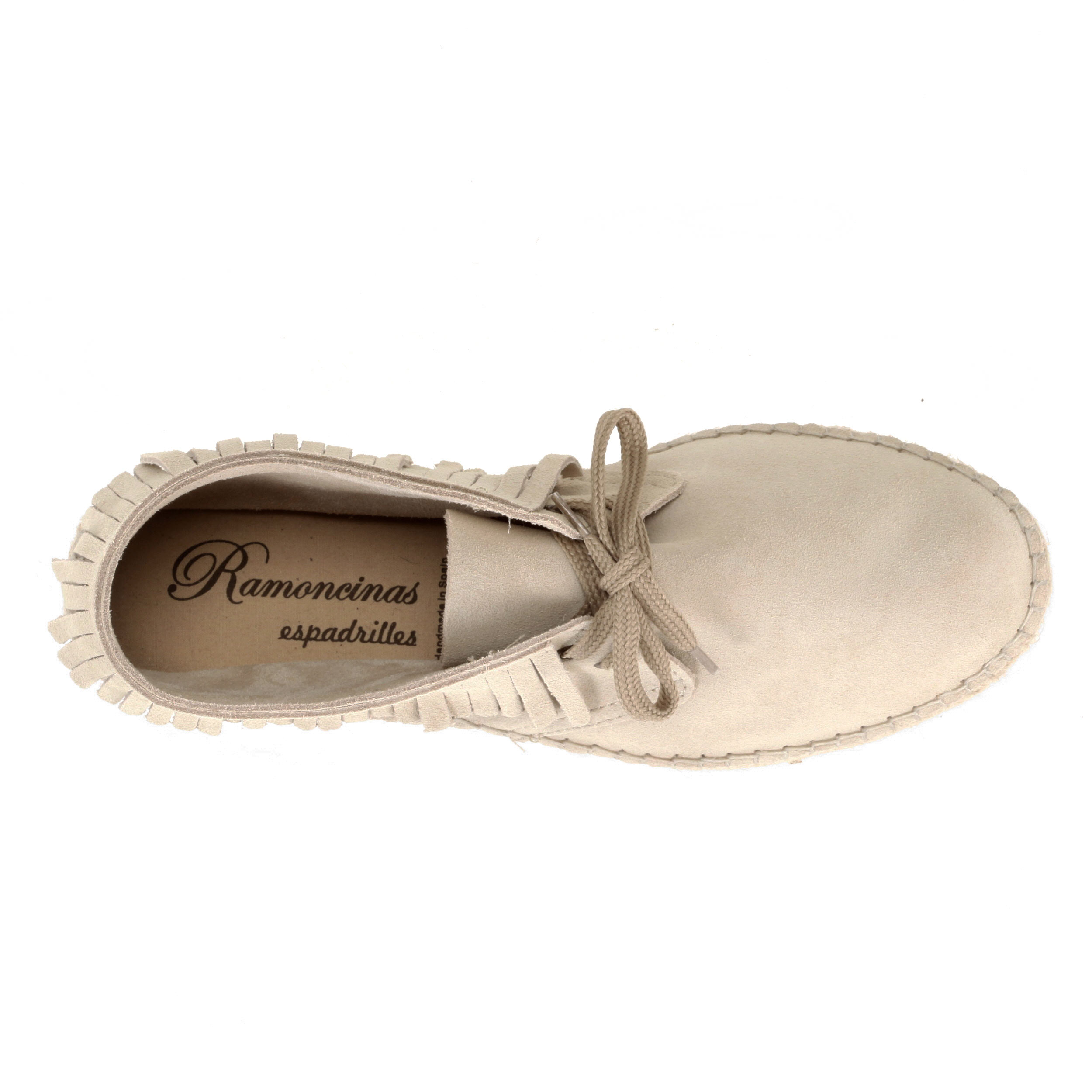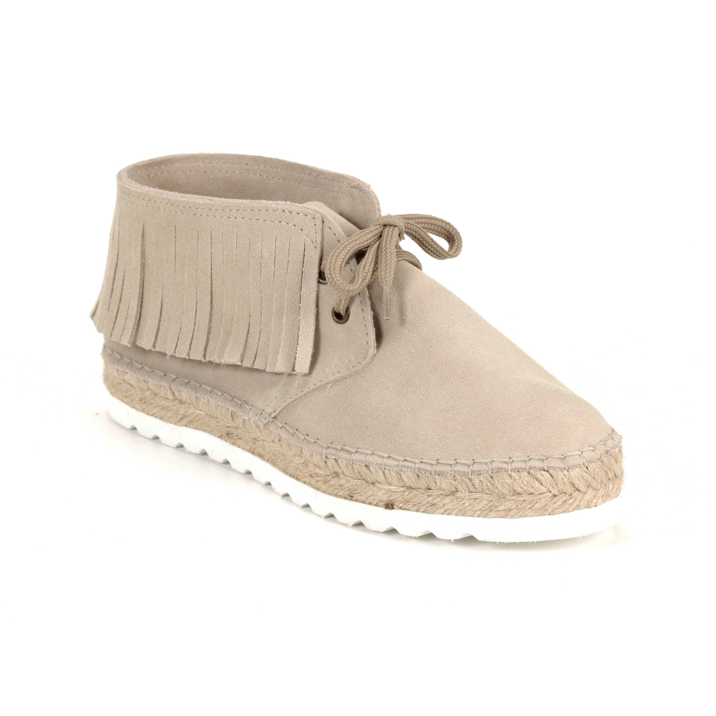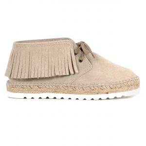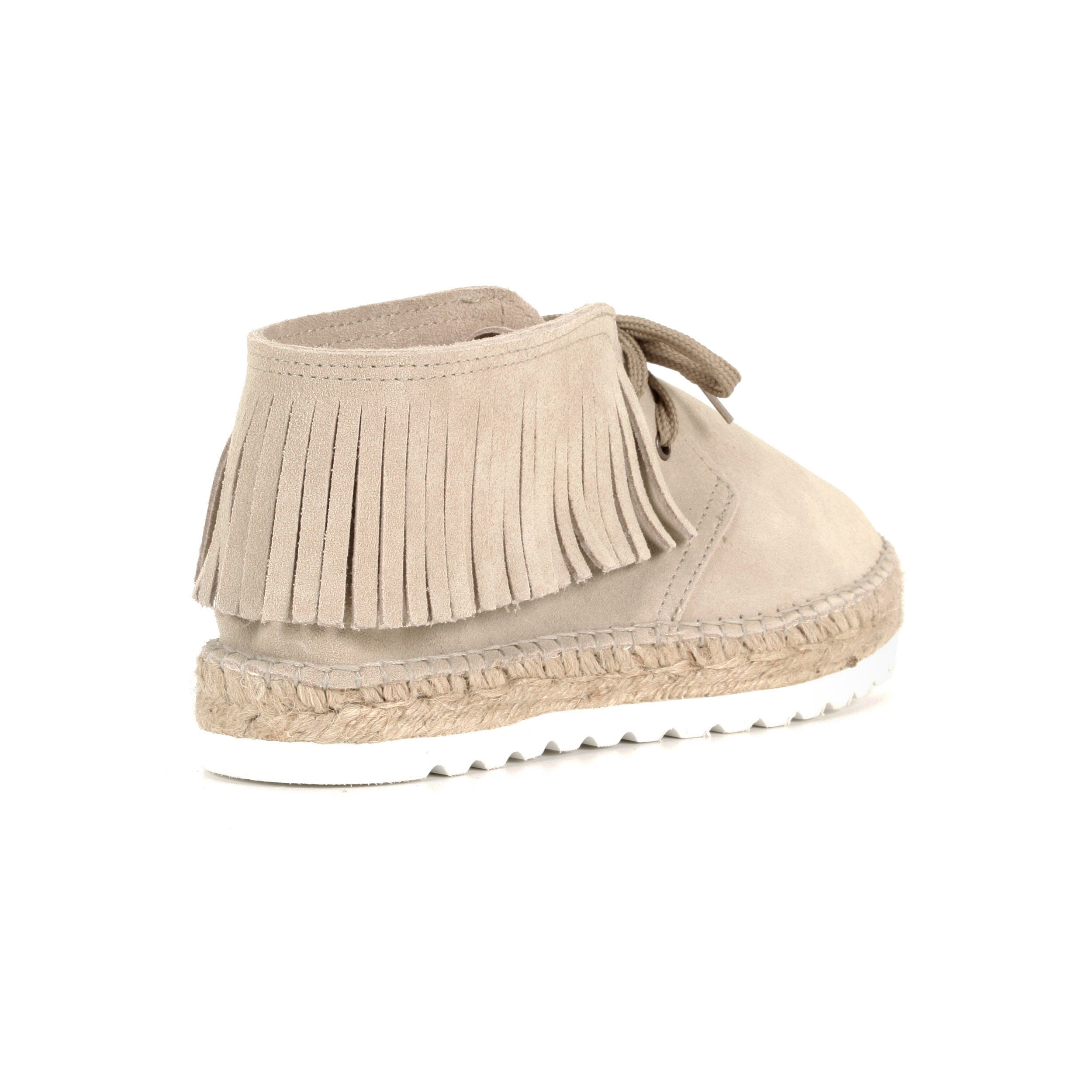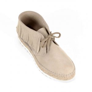 Botín de ante beig con flecos en suela blanco de eva 3cm