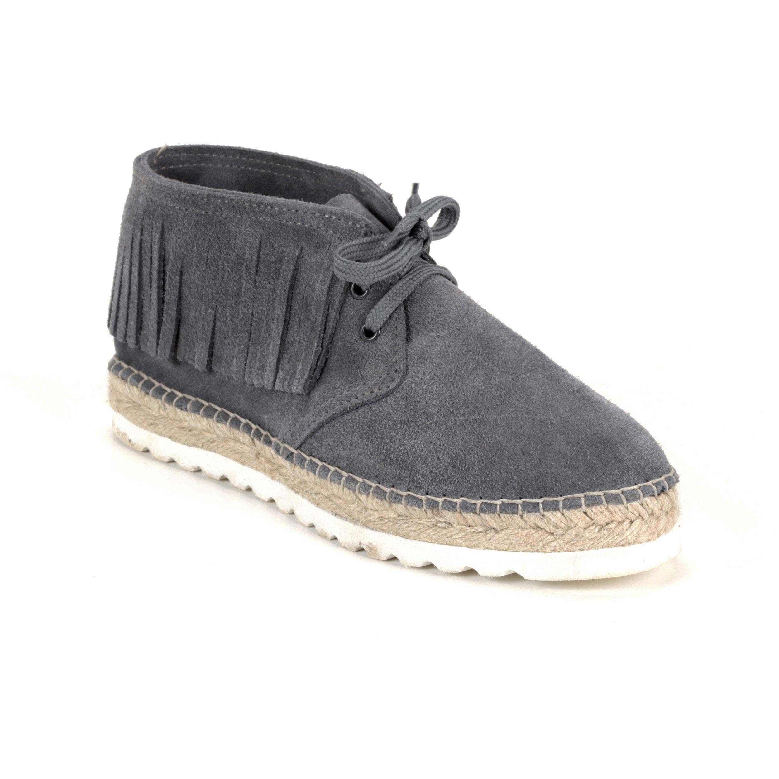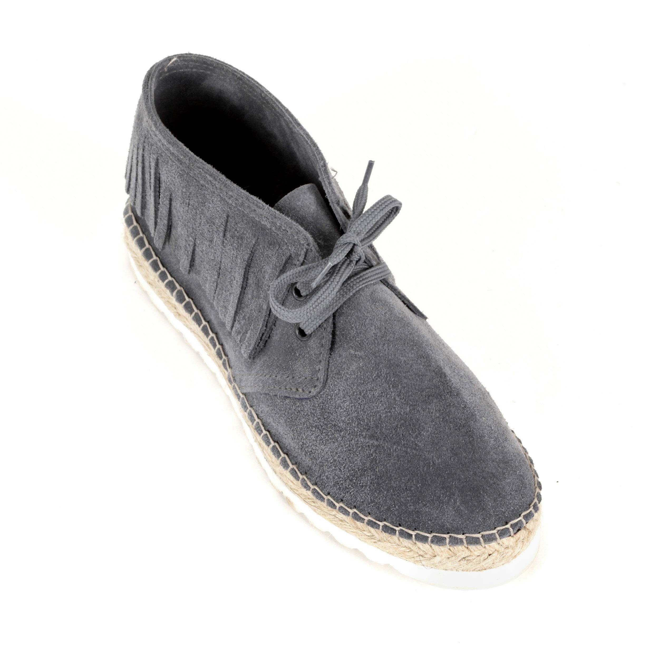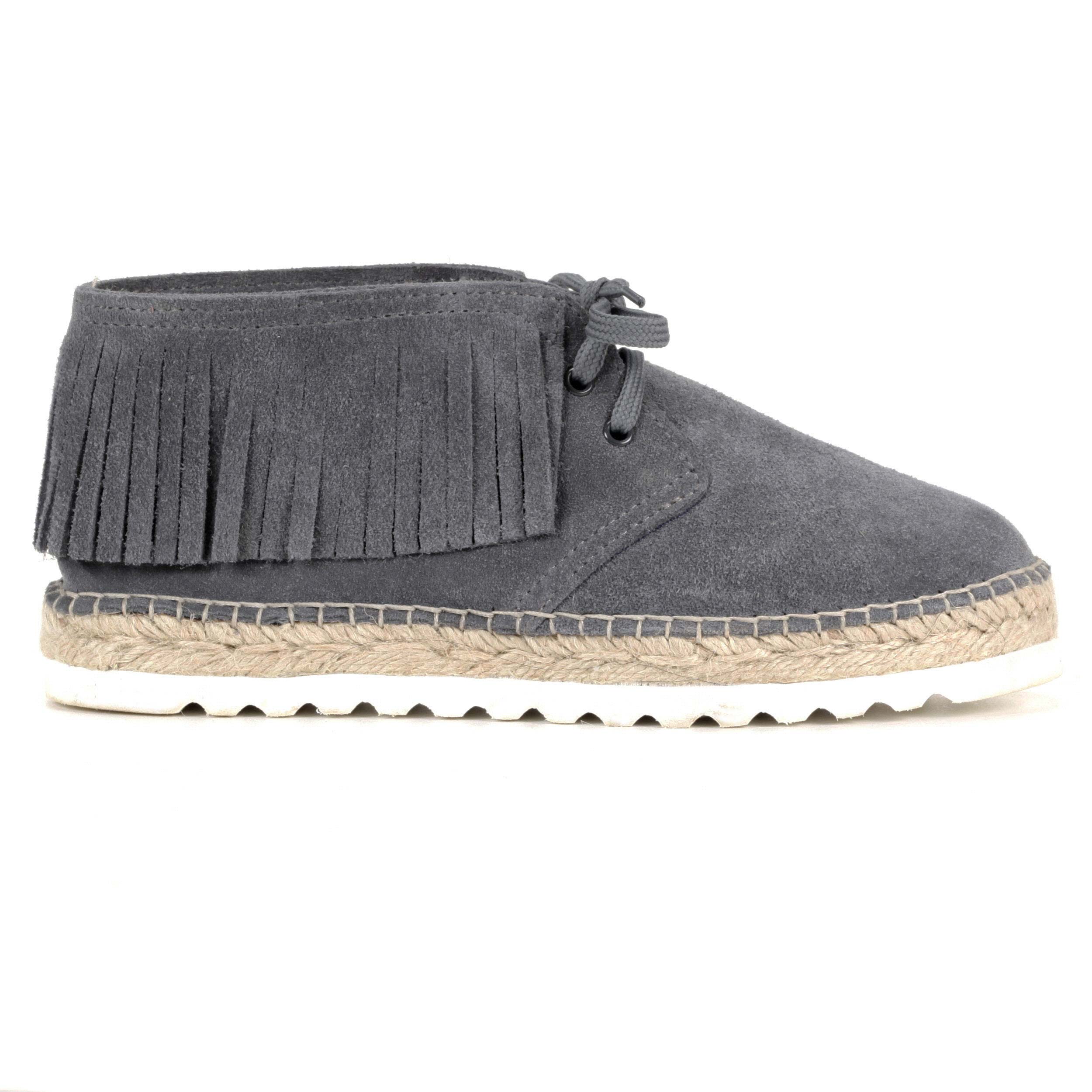 Botín de ante marengo con flecos en suela blanco de eva 3cm