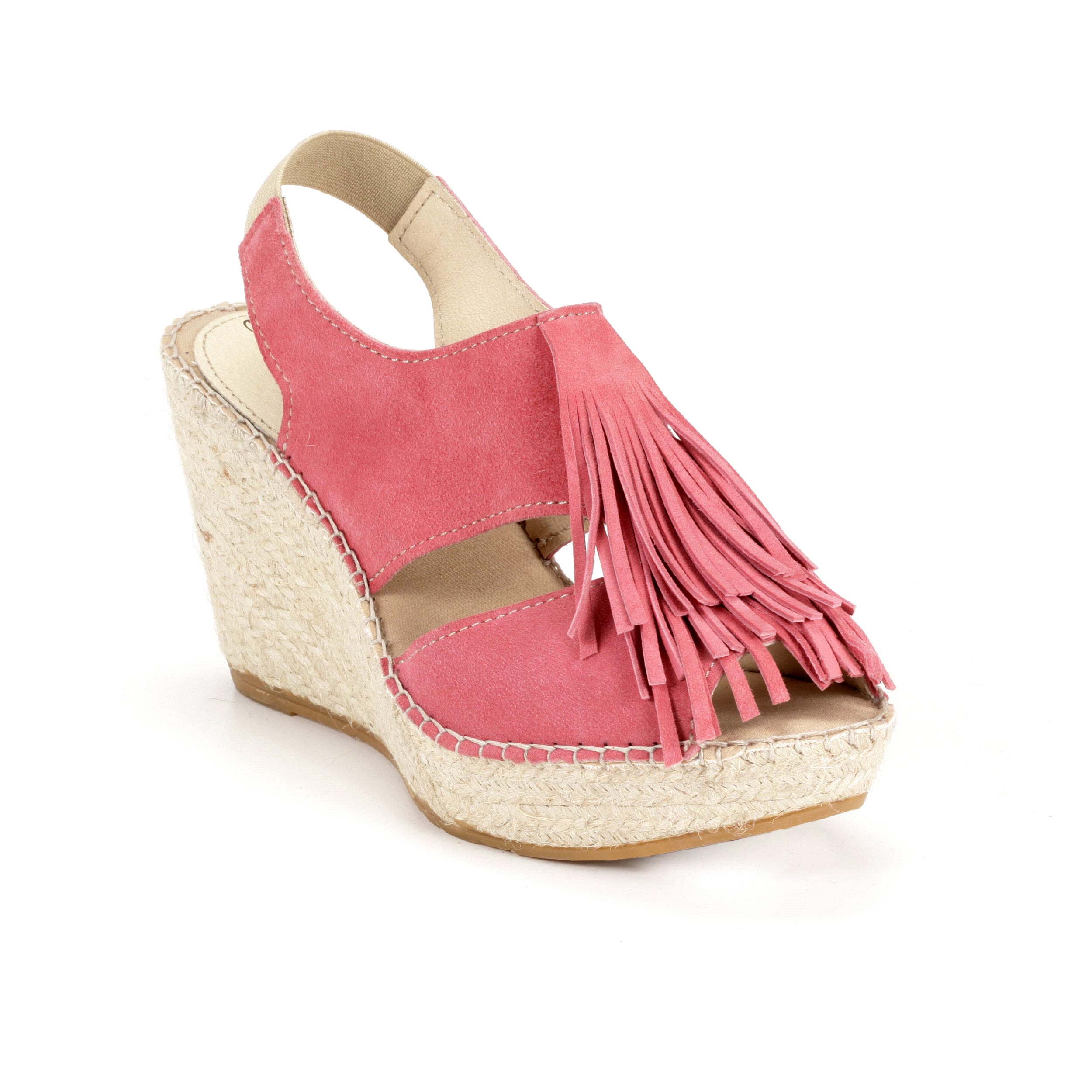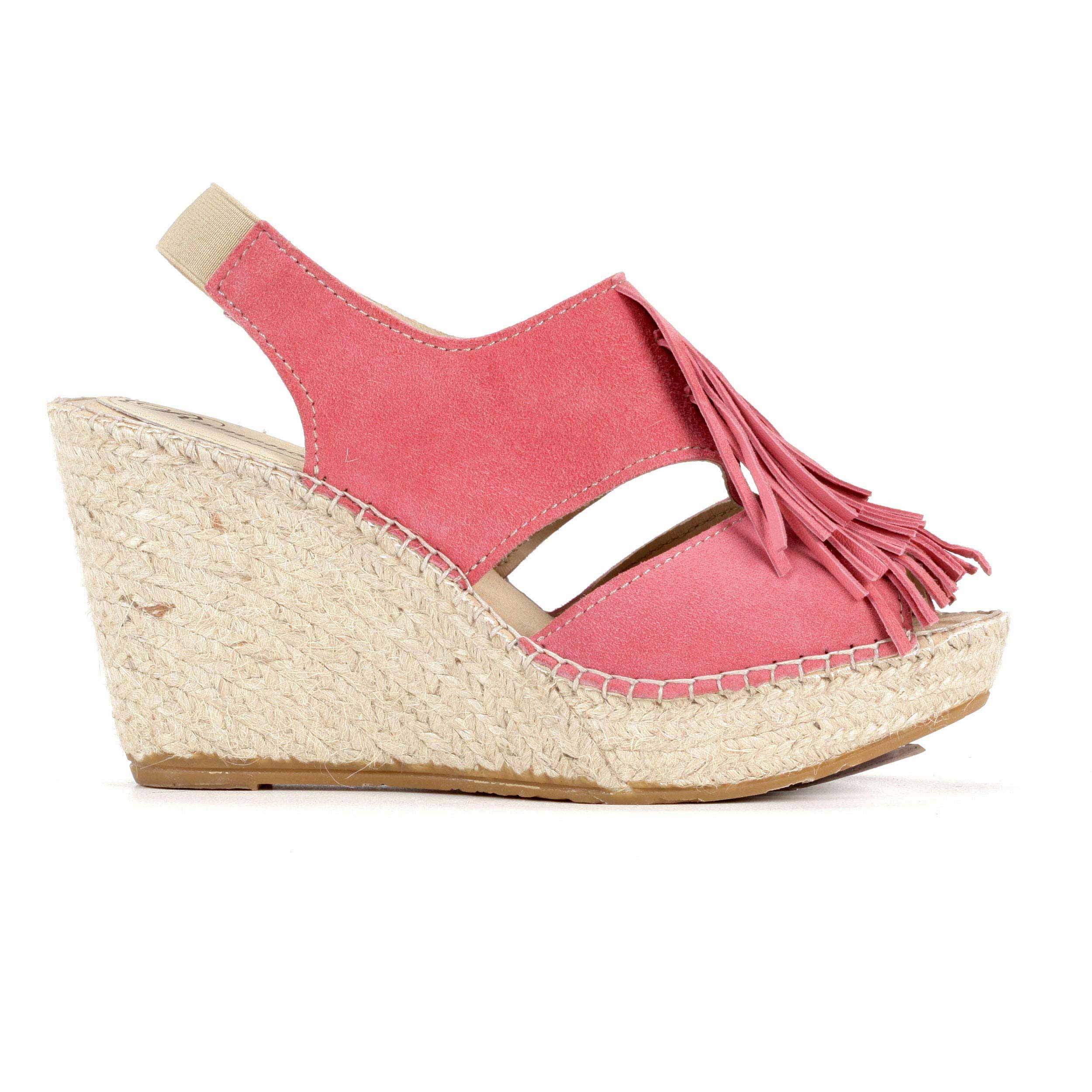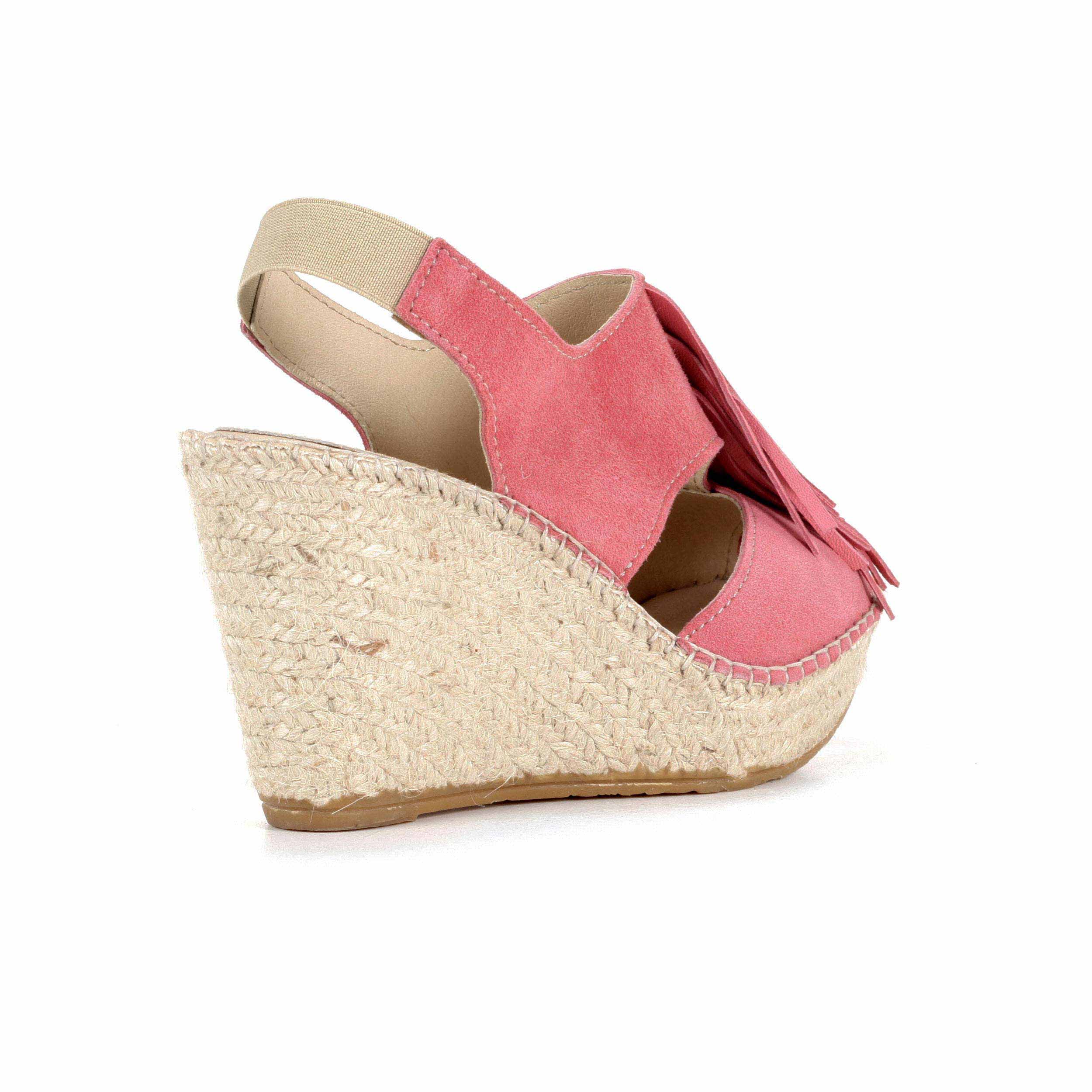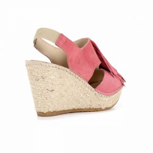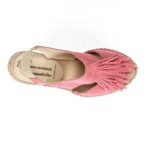Zueco de ante rosa con aberturas laterales y flecos en el empeine en suela miss flor 9cm
