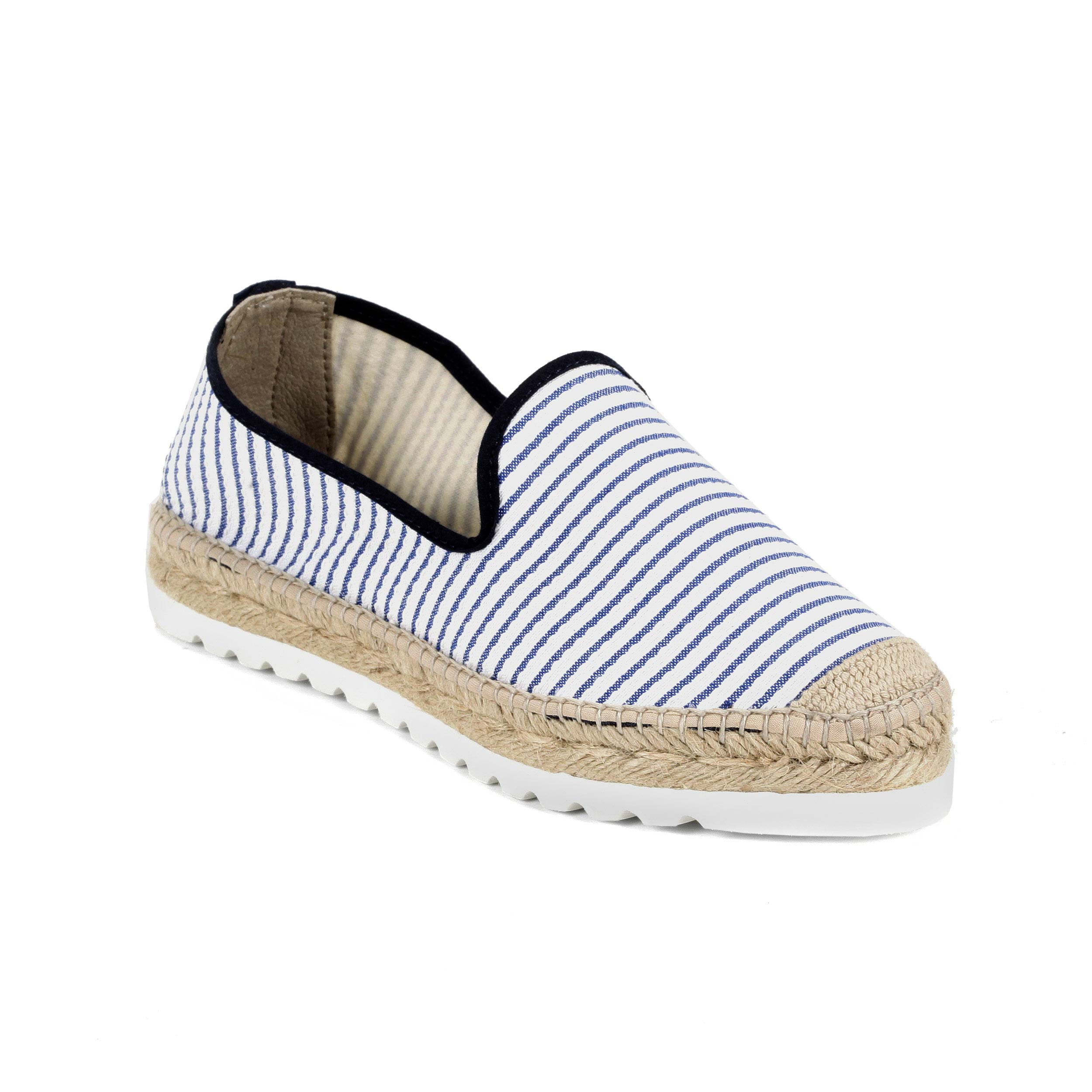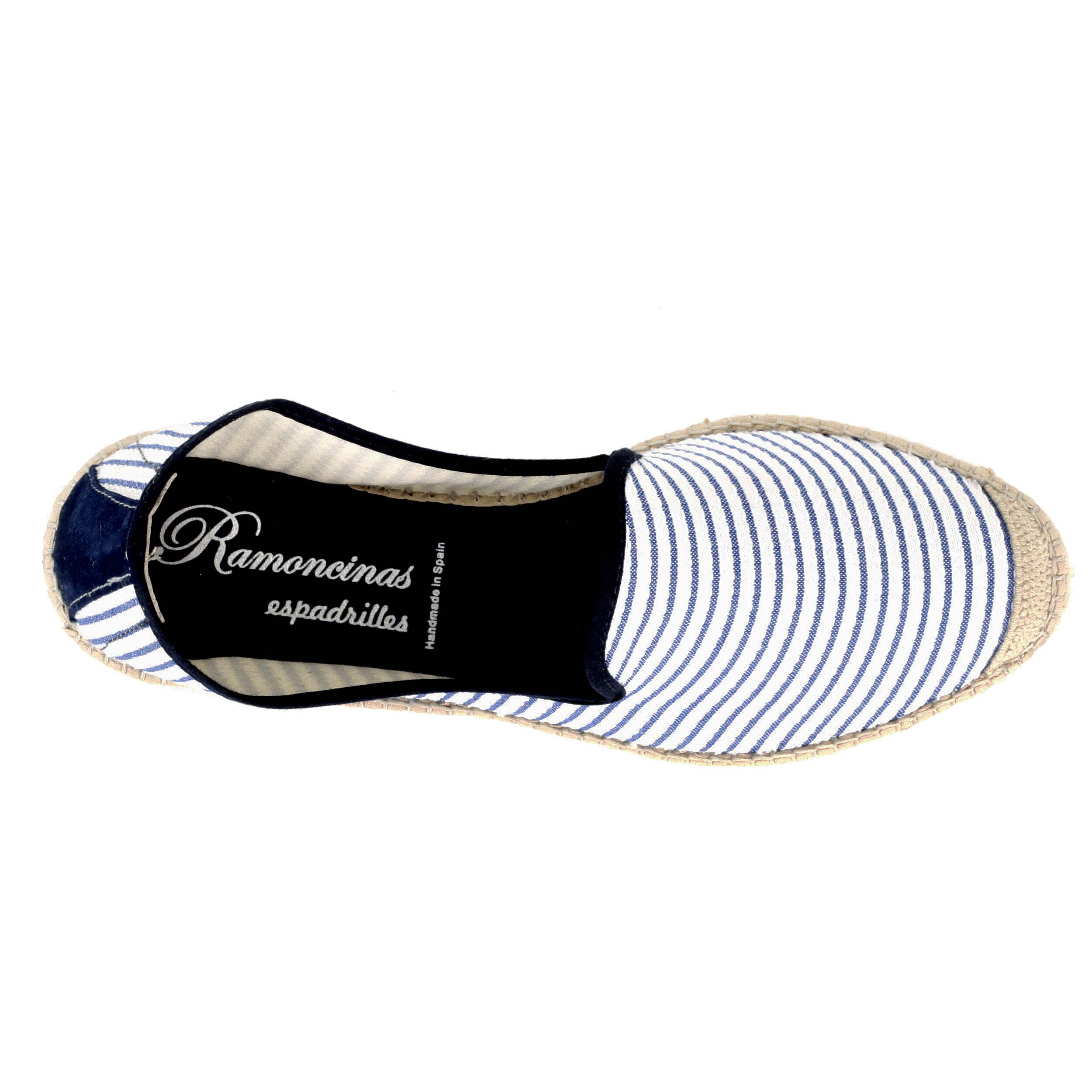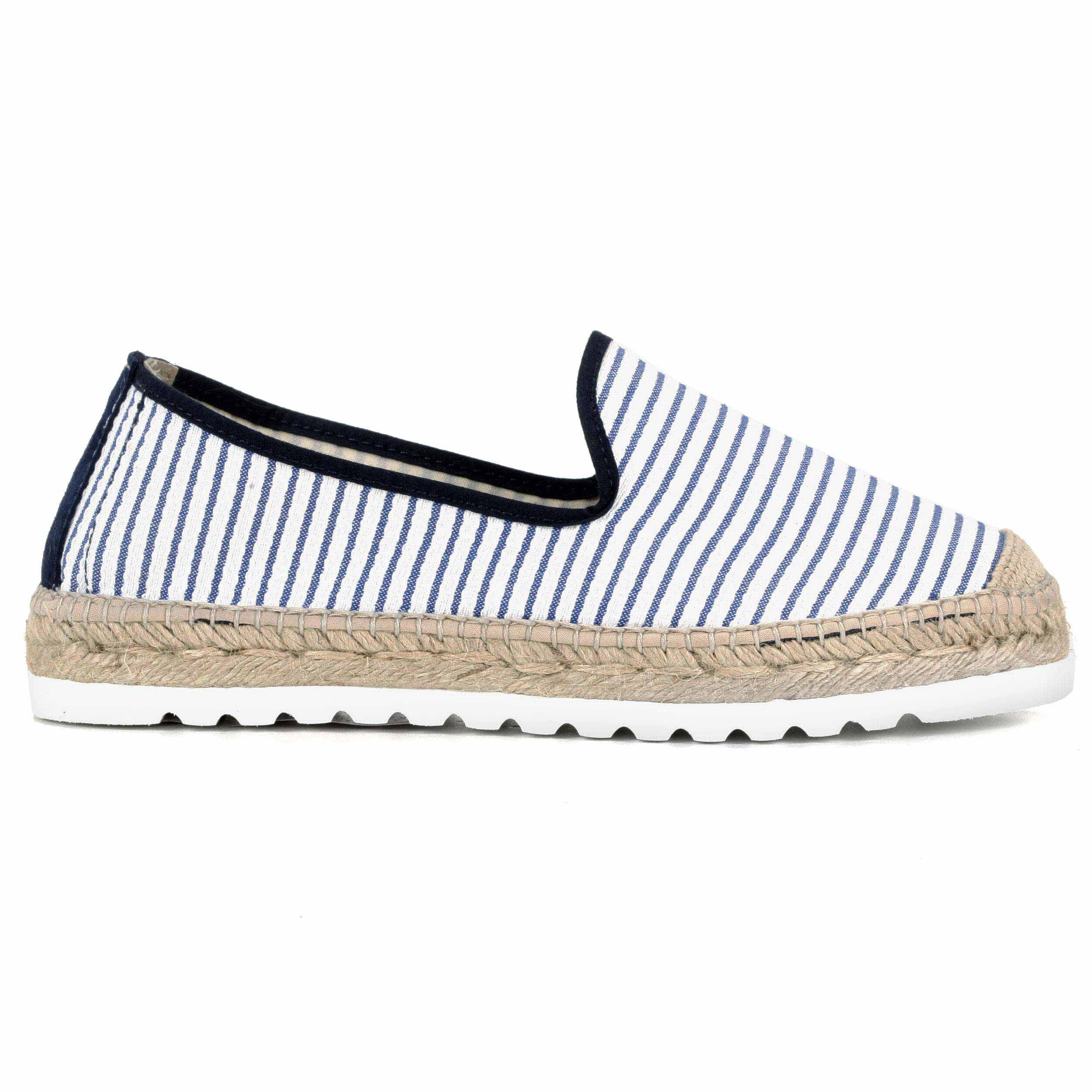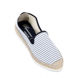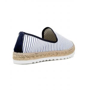 Slipper tejido fragata rayas azul con trasera de piel al tono y puntera en suela eva blanca 3cm