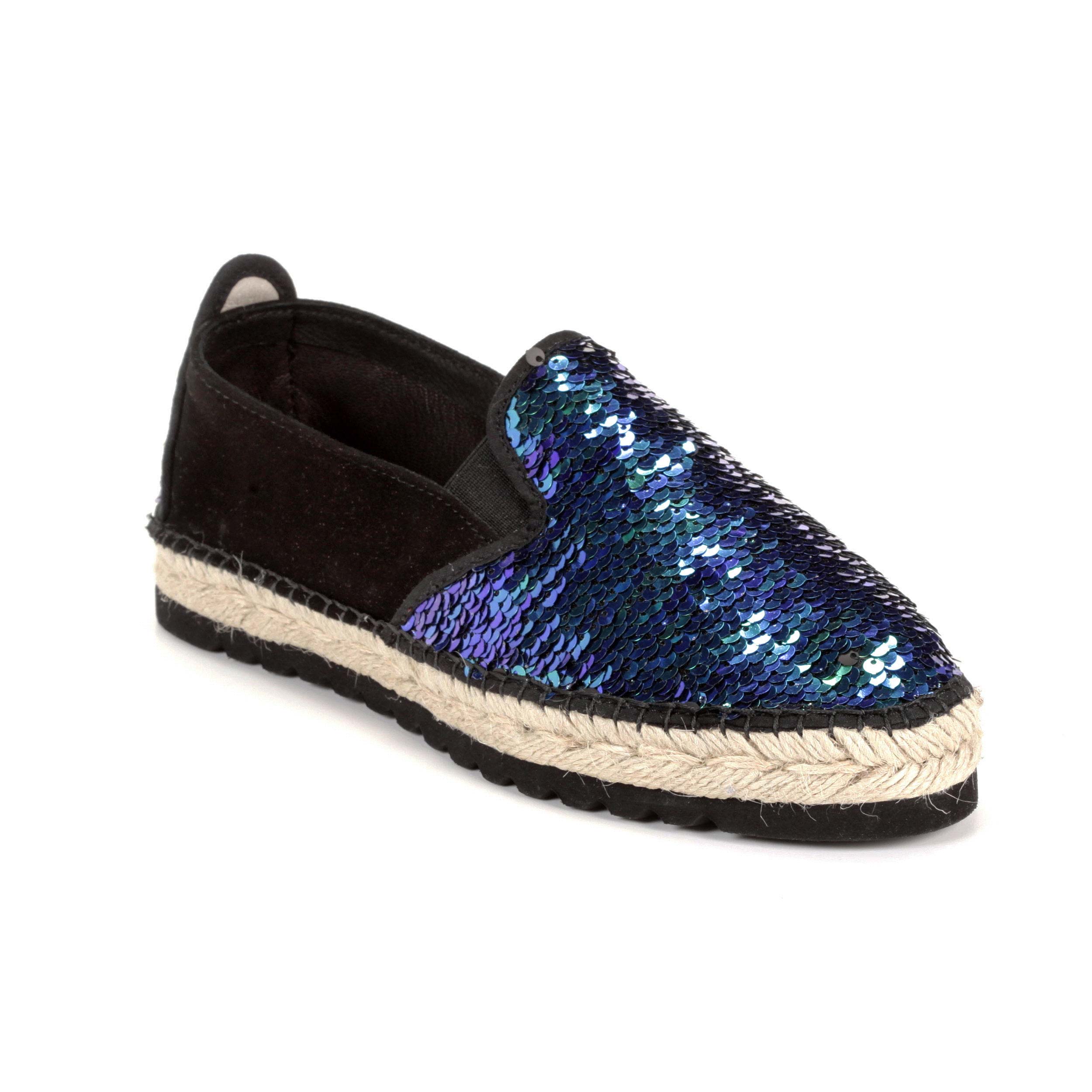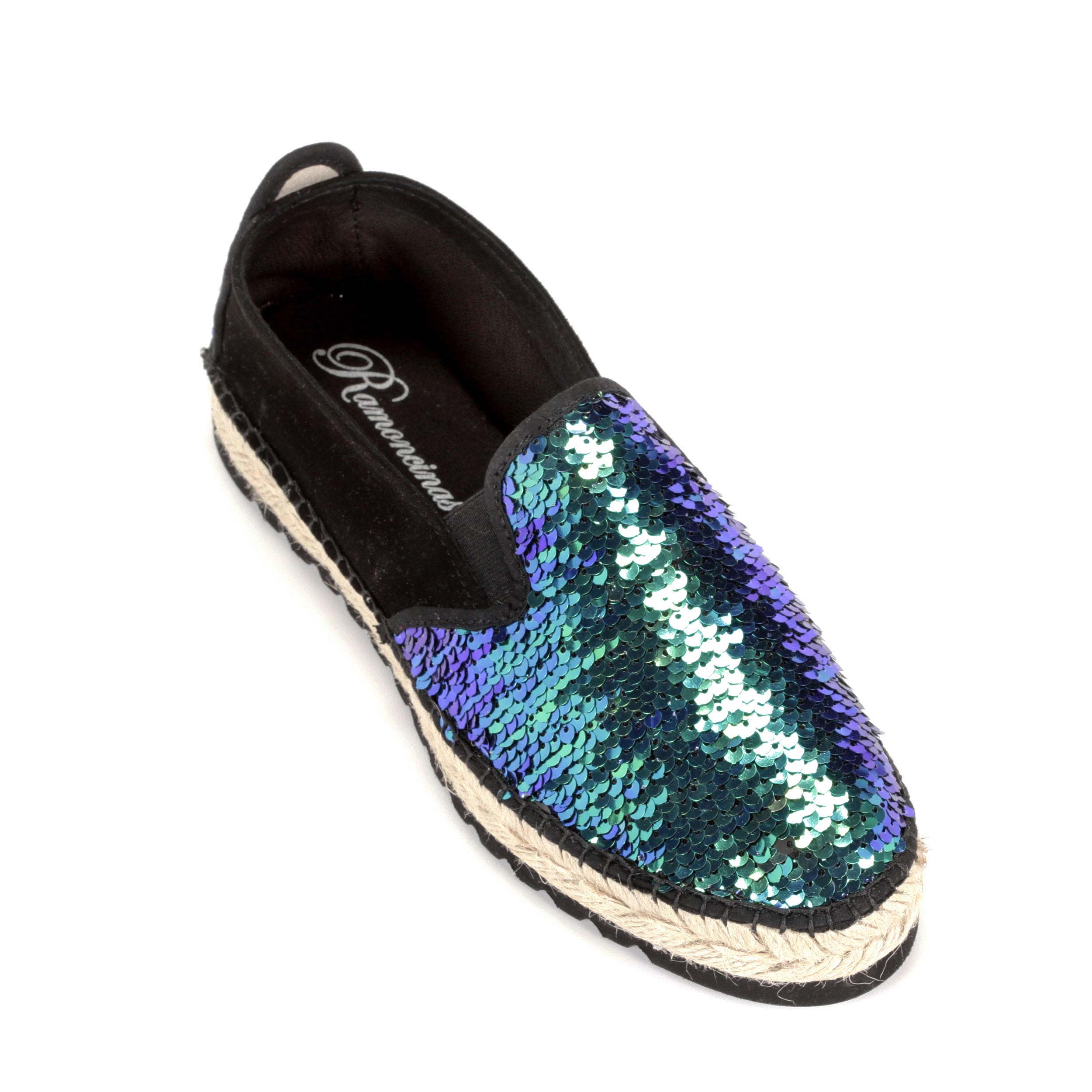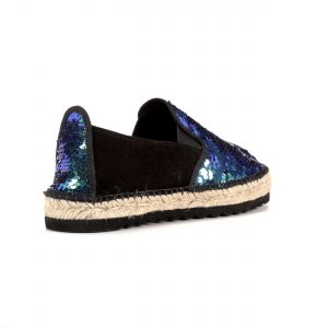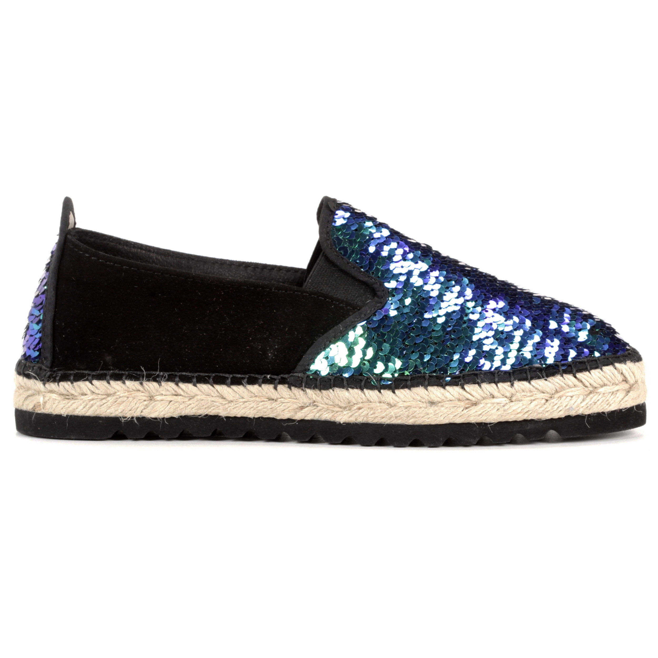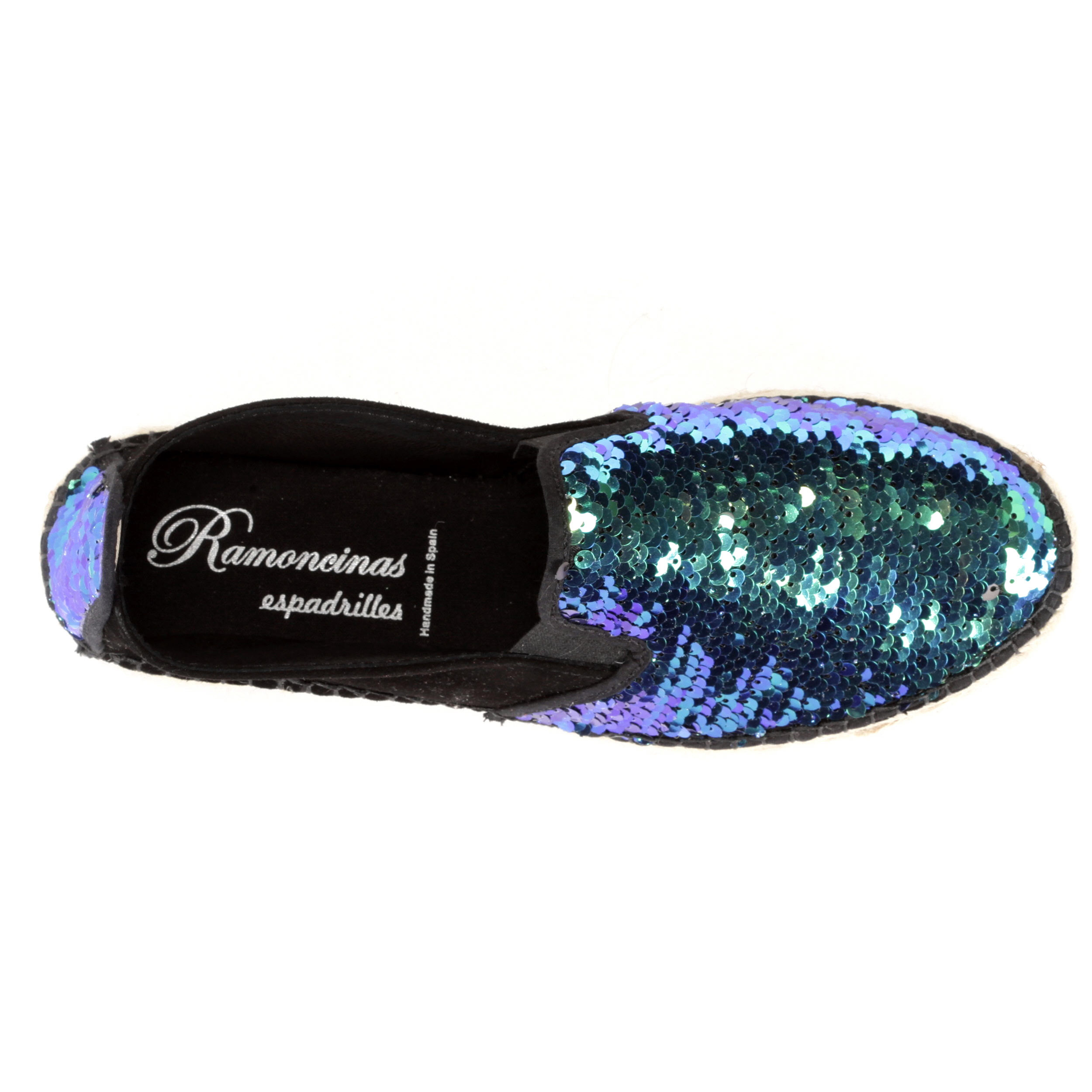 Cangrejera de lentejuelas pacifico con trasera de ante negro en suela eva negra 3cm