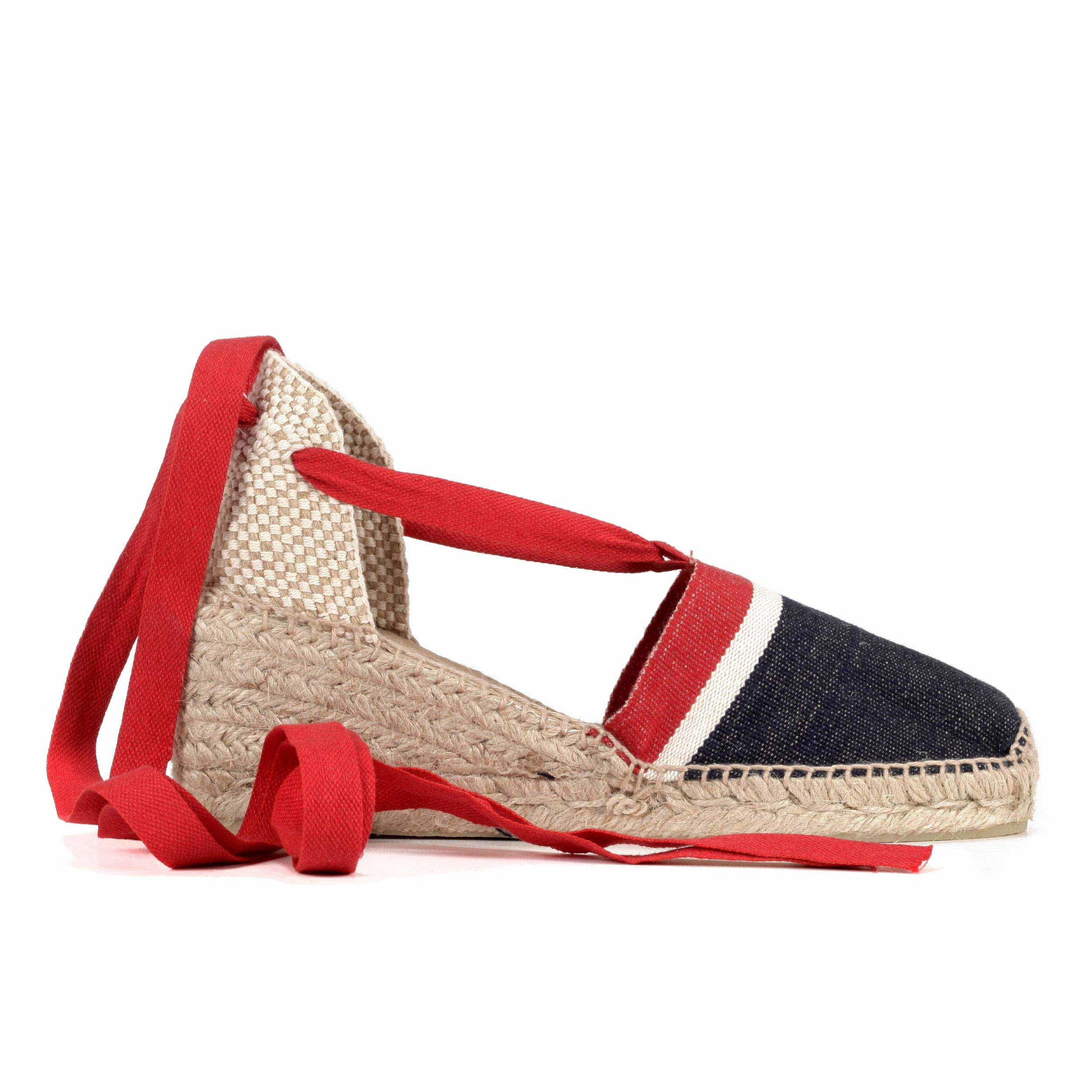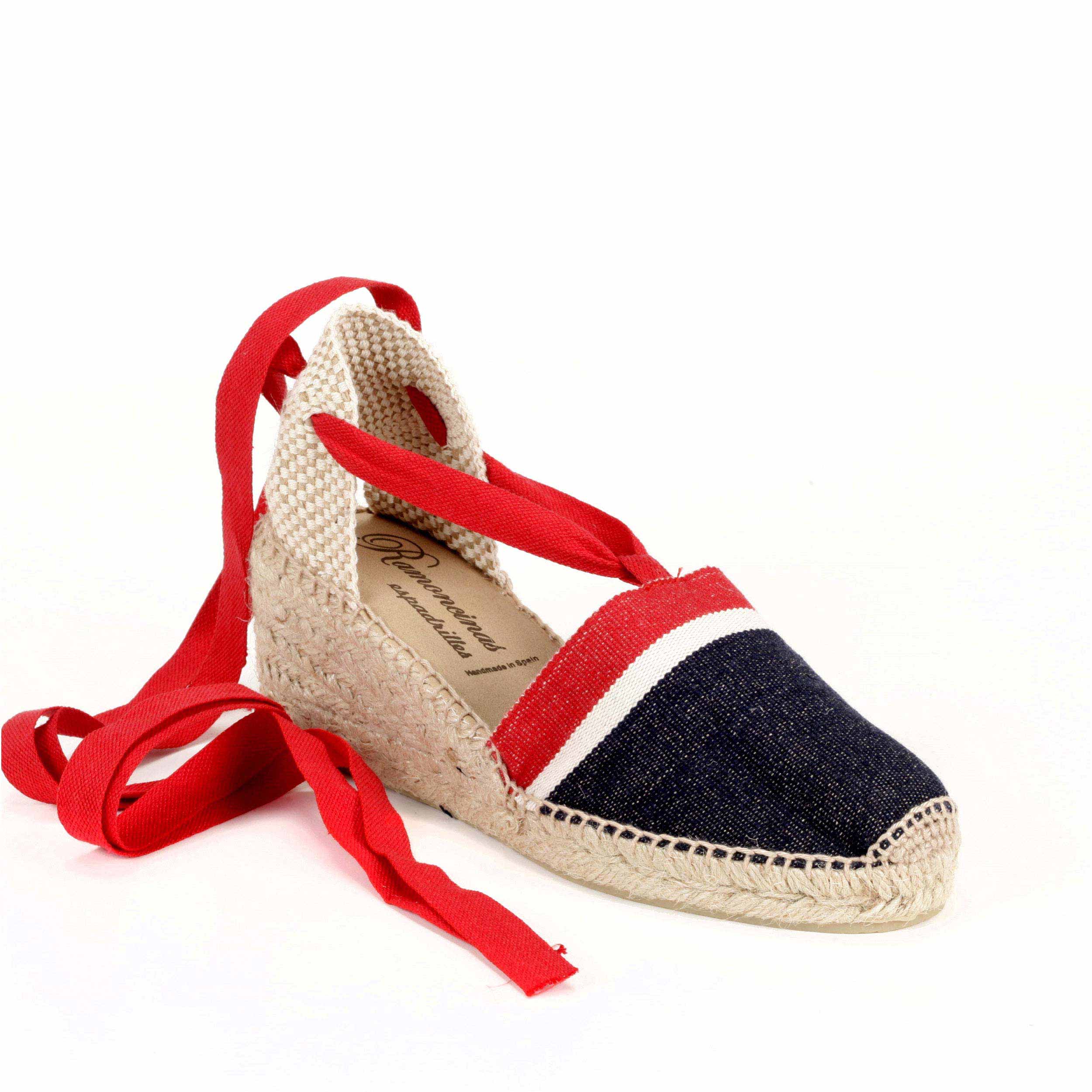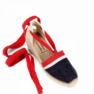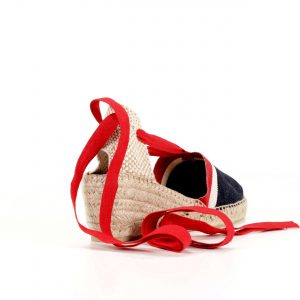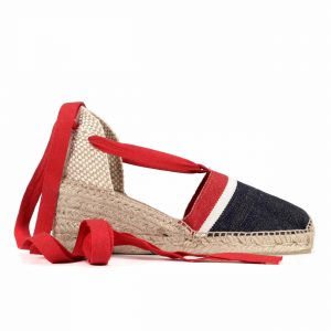 Valenciana clásica en tejido raya americana vaquero con cintas rojas en suela cinco cuerdas 7 cm